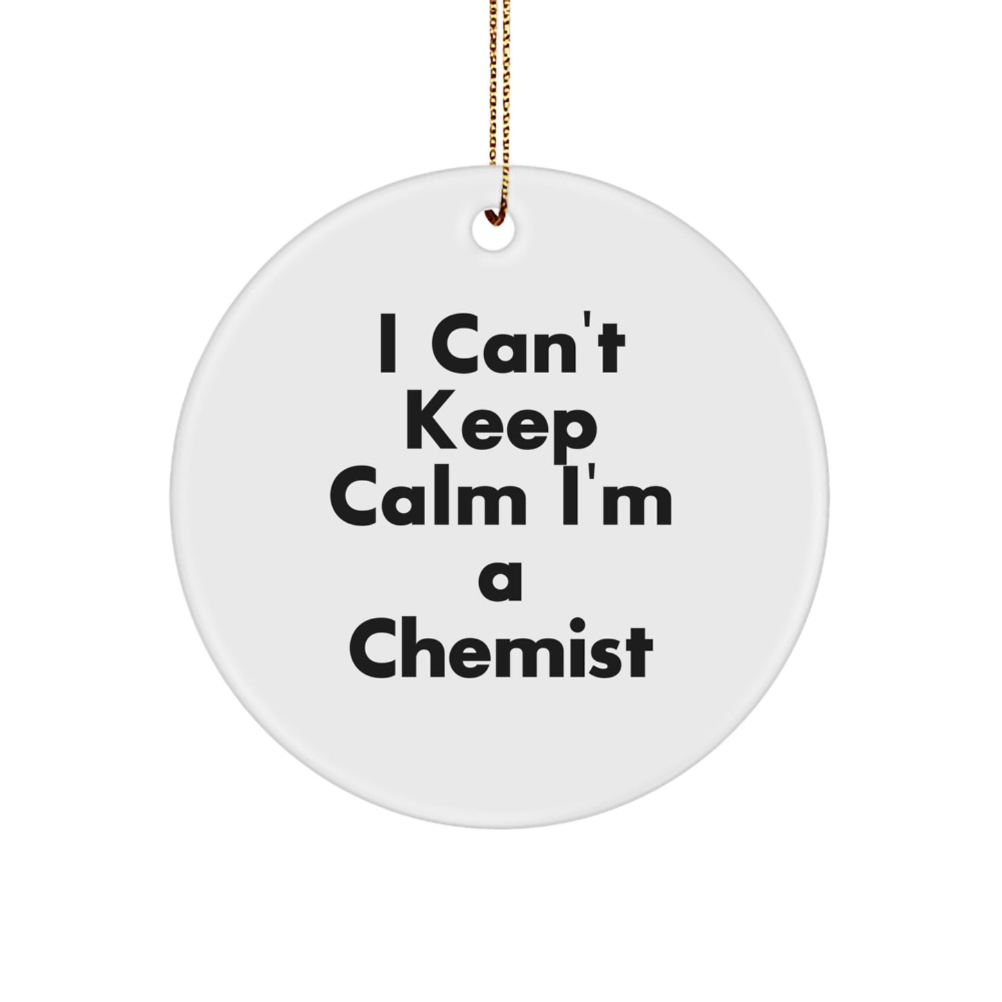 - Show off your love for chemistry with this unique 'I Can't Keep Calm I'm A Chemist' Circle Ornament, perfect for any chemistry enthusiast or lover of science, making it a great gift for friends and family.