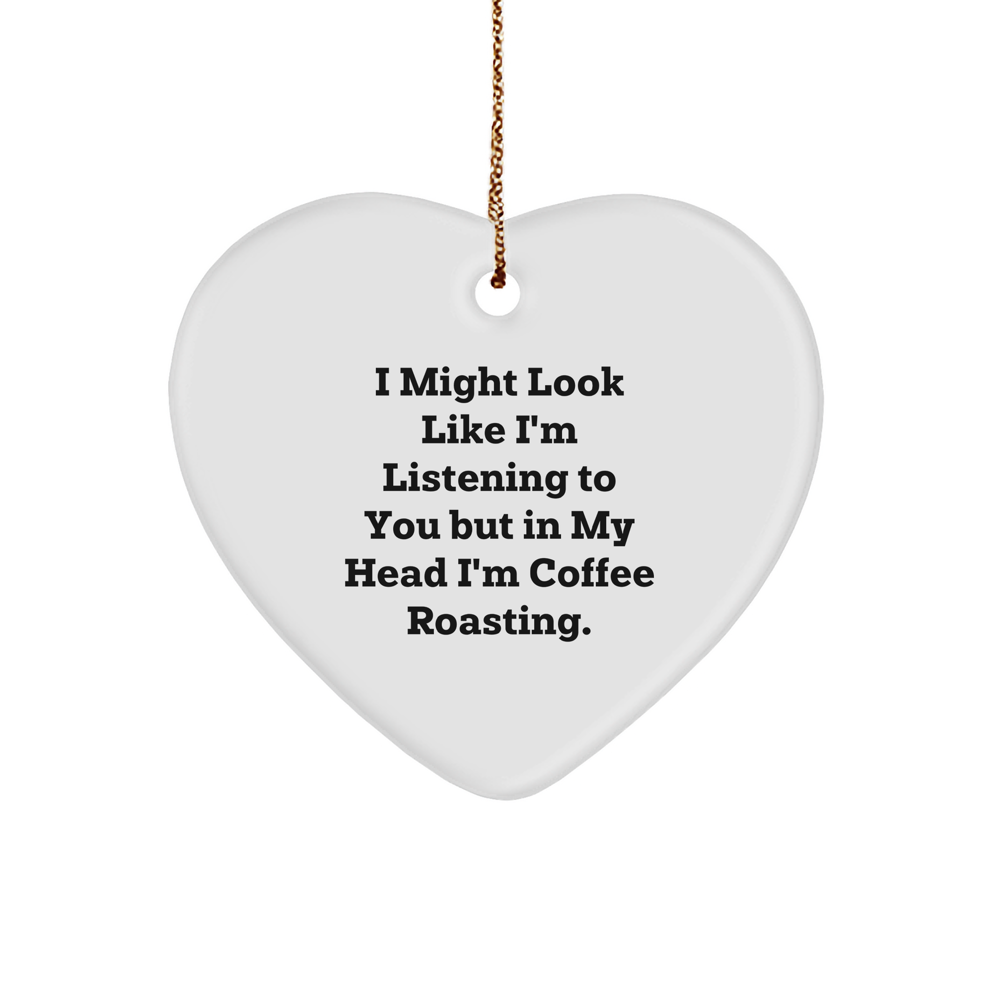 Funny Coffee Roasting Gifts for Friends and Family - 'I Might Look Like I'm Listening To You But In My Head I'm Coffee Roasting.' Heart Ornament, Christmas Unique Gifts from Men