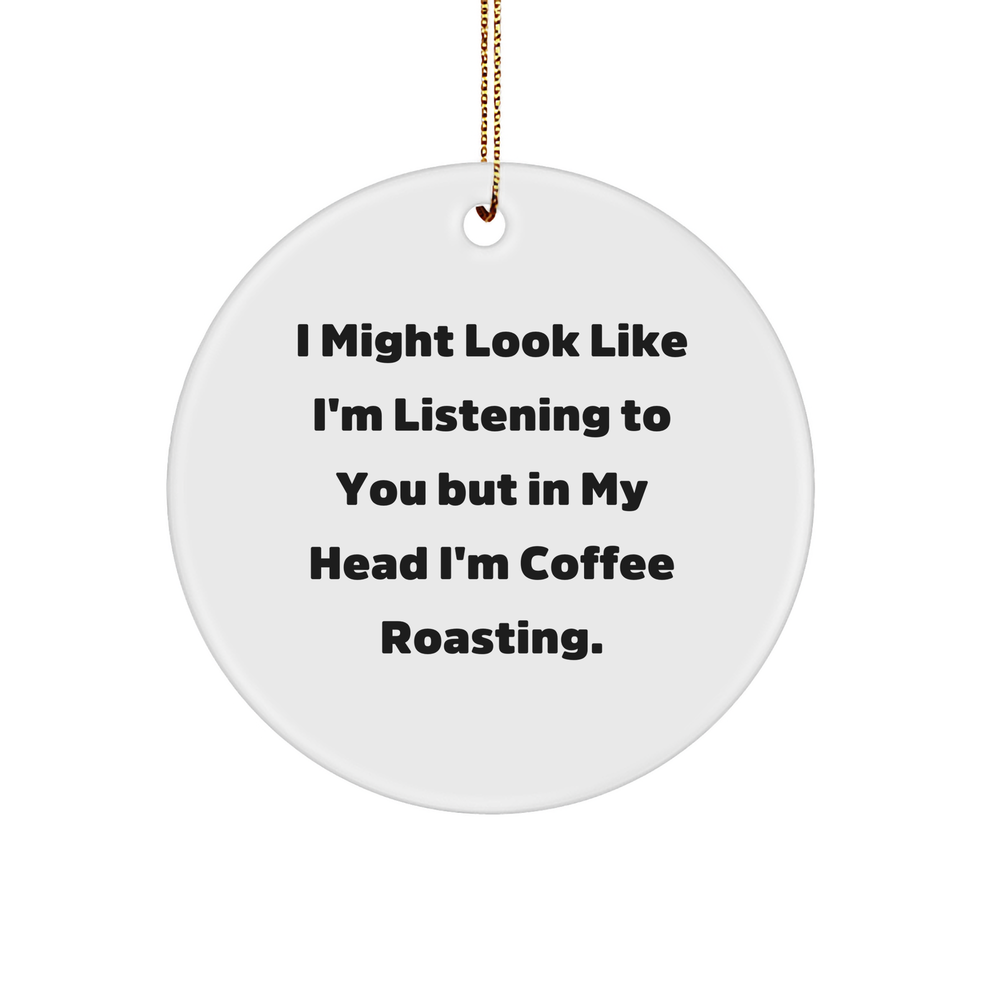 Celebrate the joy of Coffee Roasting with this unique and humorous gift for your loved ones! The quote 'I Might Look Like I'm Listening To You But In My Head I'm Coffee Roasting.' is perfectly captured on a vibrant Circle Ornament, making it a thoughtful and entertaining addition to any coffee lover's space. This thoughtful gift is perfect for Coffee Roasting enthusiasts and anyone who loves a good laugh. Whether you're looking for a unique Christmas gift for your sister, best friend, or coworker, this Circle Ornament is sure to bring a smile to their face. With its sturdy MDF construction and high-gloss finish, this ornament is built to last and will withstand the rigors of daily handling. So why settle for a boring, ordinary gift when you can give a gift that's as unique as the coffee lover in your life?