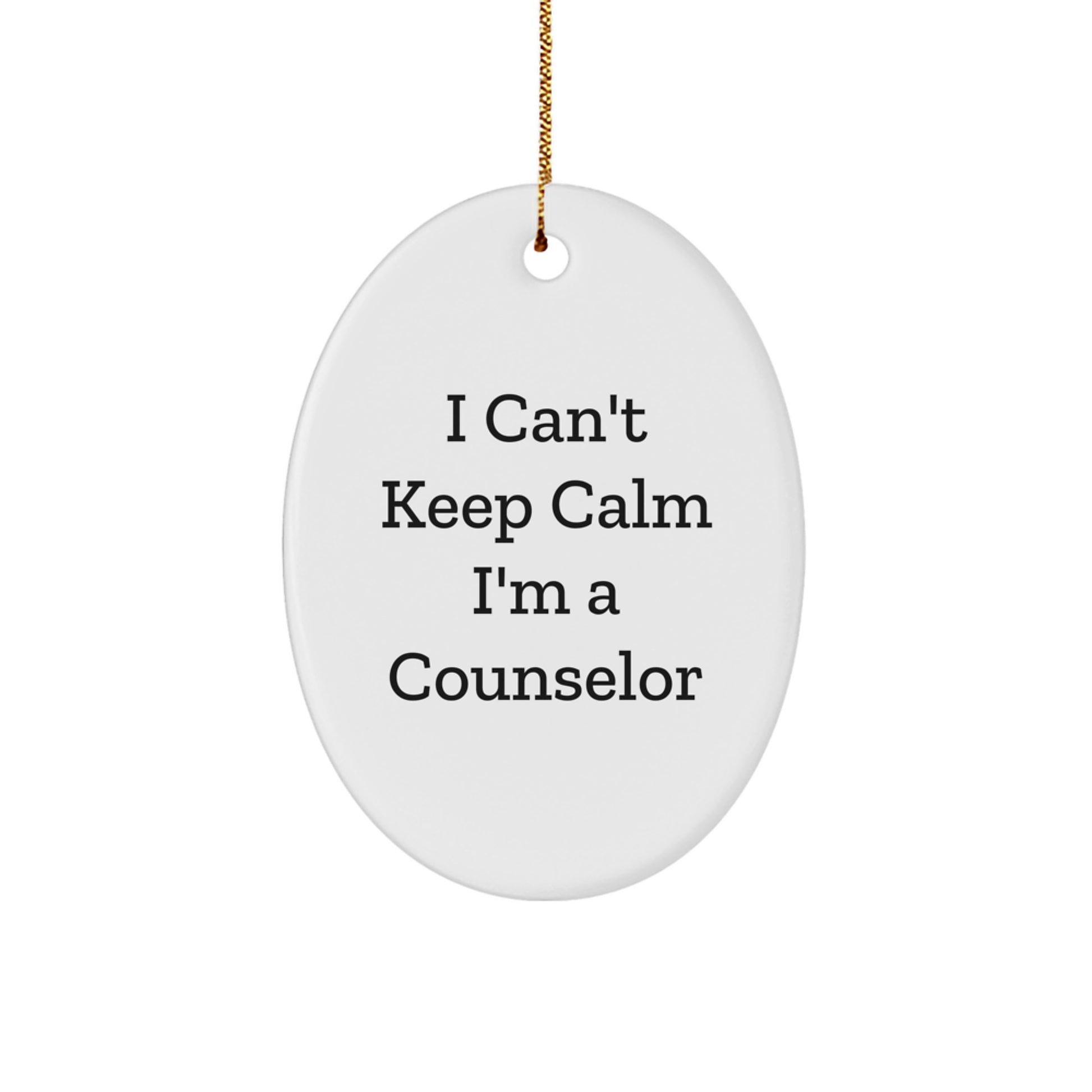- Don't miss out and make a meaningful difference in the life of a Counselor you know and appreciate. This I Can't Keep Calm I'm A Counselor Oval Ornament is a wonderful gift idea for Counselors, and with its festive gold cord and easy-hanging design, it's the perfect addition to any Christmas tree or office decor. Don't miss out on this opportunity to spread some holiday cheer and show your love and appreciation for these incredible professionals.