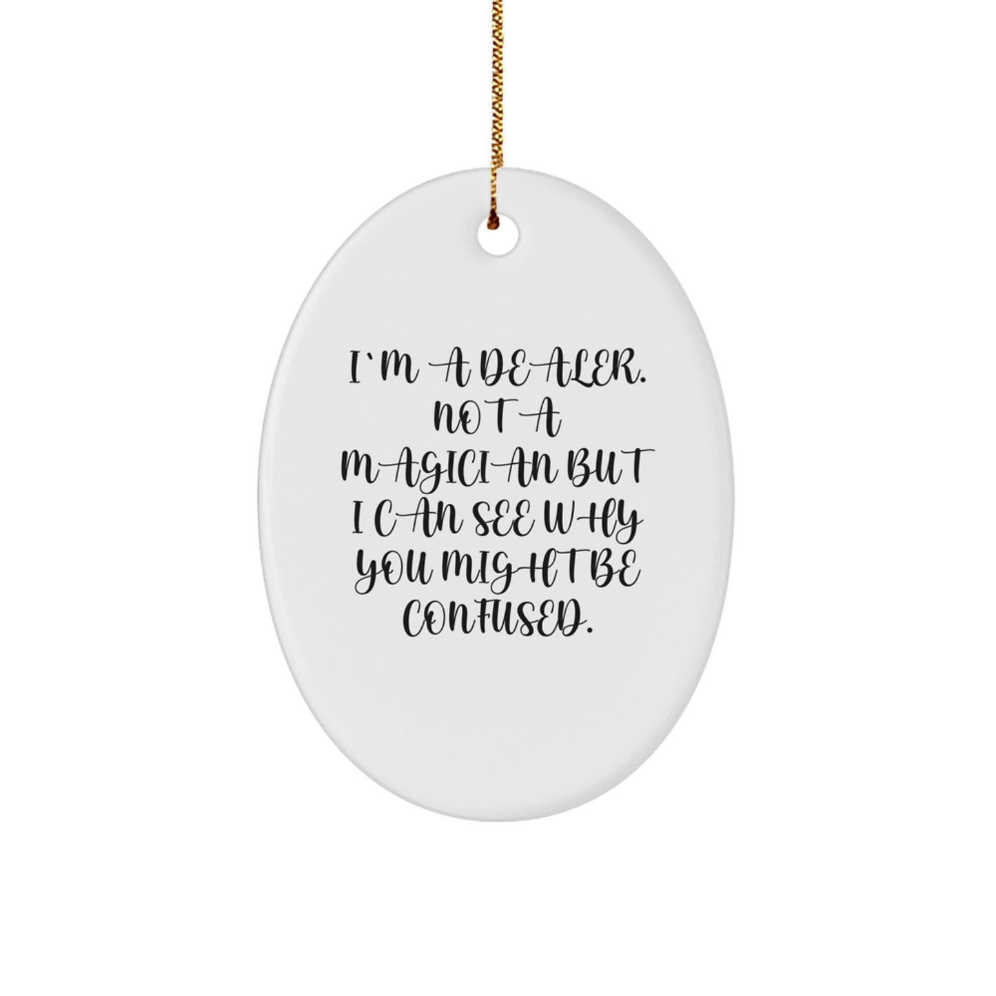 Funny Dealer Gifts - 'I'm A Dealer. Not A Magician...' White Oval Ornament, Perfect for Men, Women, Friends, Coworkers, or Family