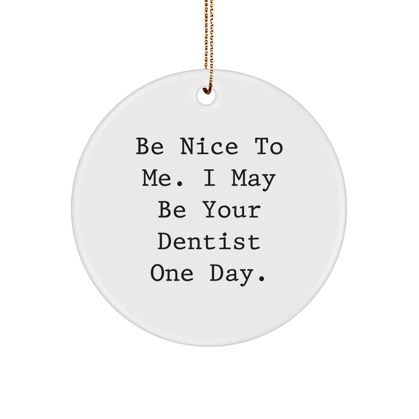 Funny Dentist Gifts - Circle Ornament for Christmas with Quote 'Be Nice To Me. I May Be Your Dentist One Day.' - Gifts from Friends and Family