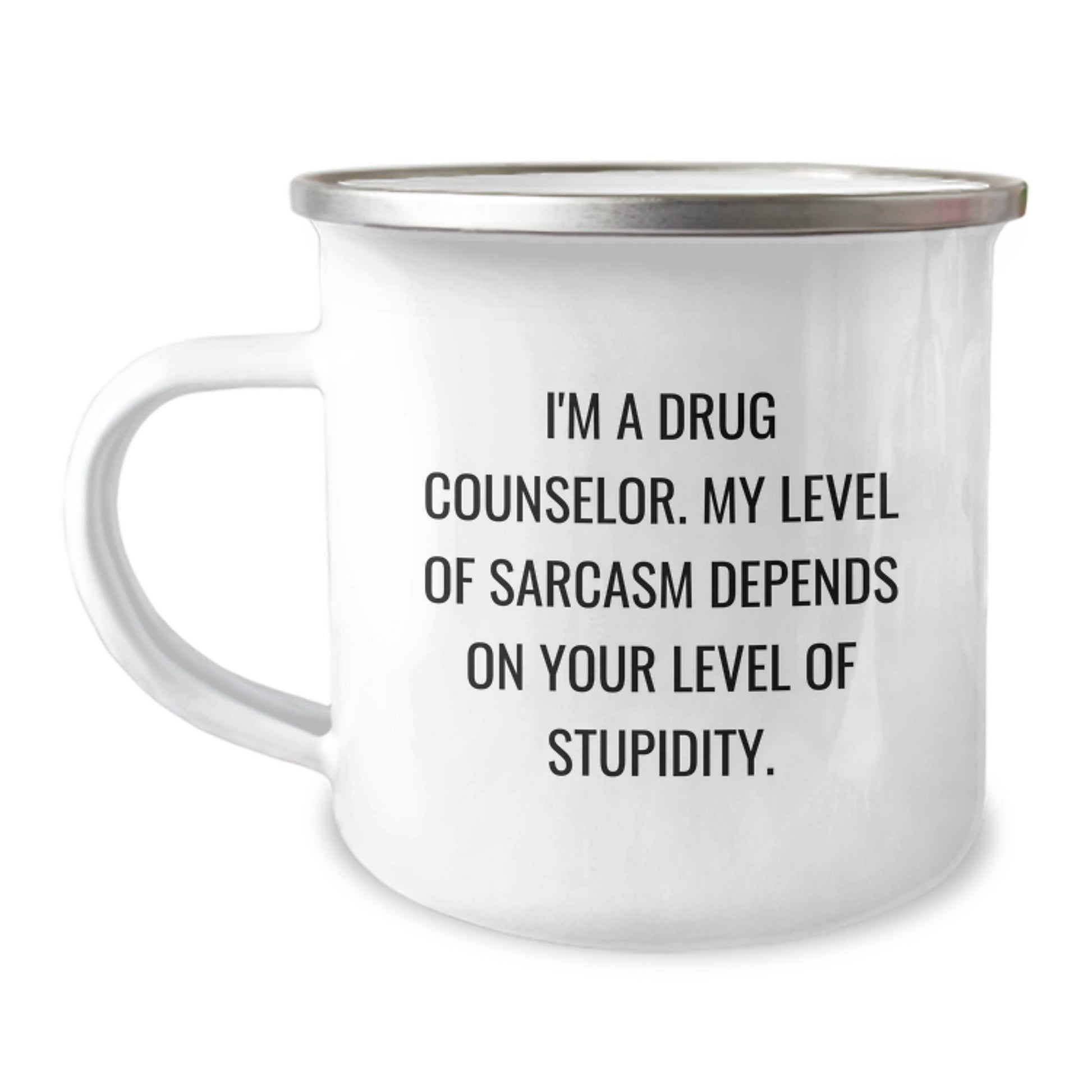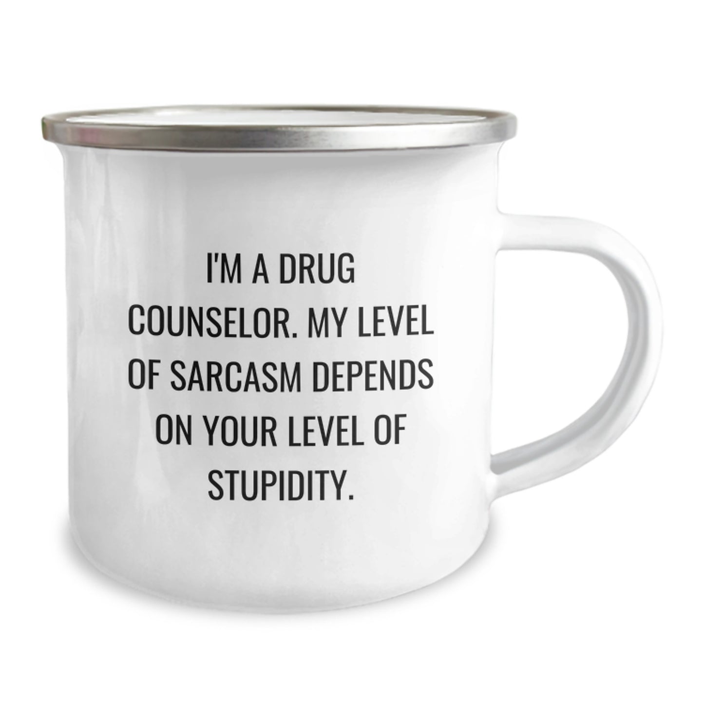 - Whether you're a seasoned Drug Counselor or just a fan of sarcastic humor, this camping mug makes a great gift for any occasion. It's the perfect way to show your appreciation for your favorite Drug Counselor and add some humor to their day.