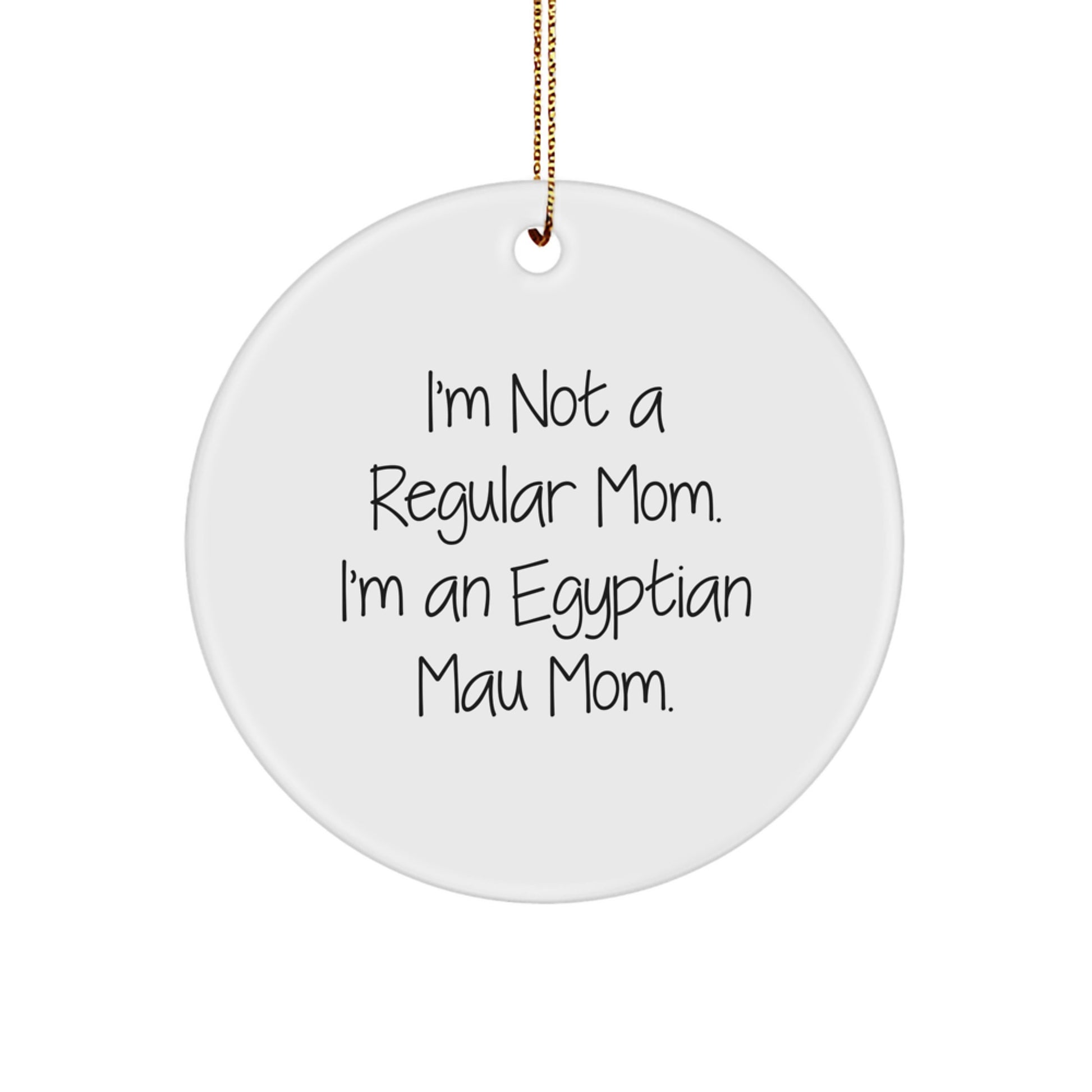 - Add a touch of humor and personality to your Egyptian Mau Cat lover's home decor with this unique circle ornament featuring the quote 'I'm Not A Regular Mom. I'm An Egyptian Mau Mom.'