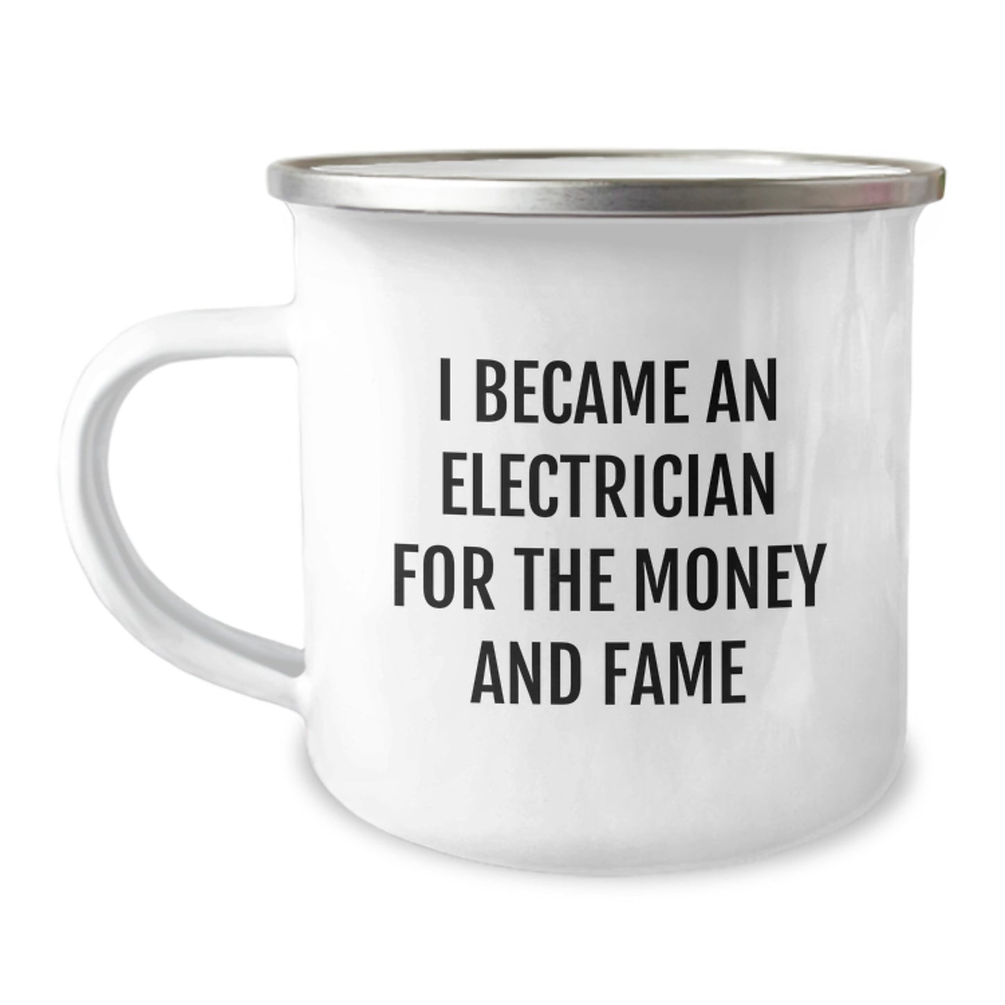 Featuring the quote, 'I Became An Electrician For The Money And Fame', this mug is a hilarious way to express your Electrician pride. Whether you're heading out on a camping trip or just need a morning boost, this stainless steel mug with an enamel finish is the perfect companion. With a 12 oz capacity, it's the ideal size for your daily dose of coffee or tea.