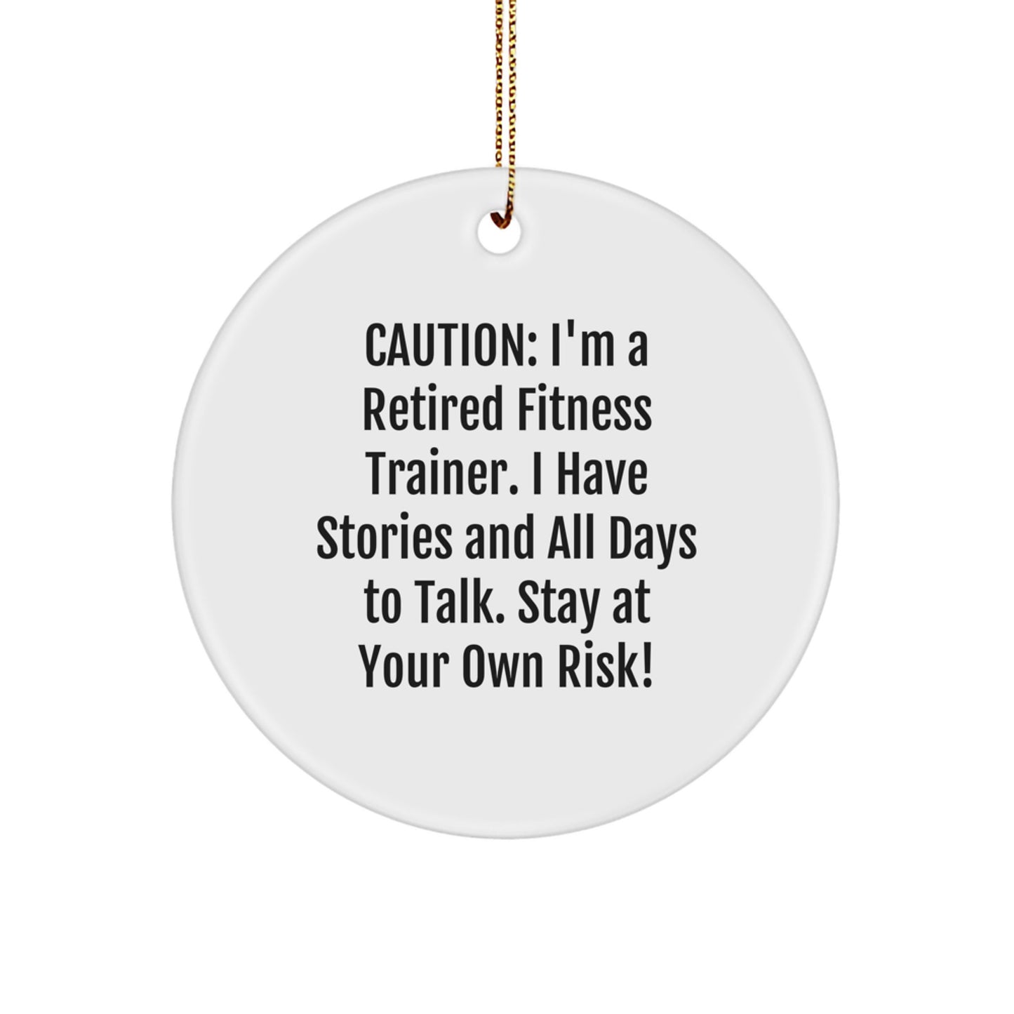 Are you looking for a unique gift for a Fitness Trainer enthusiast? Look no further! This Funny Fitness Trainer Christmas Circle Ornament is a ideal gift for Fitness Trainers who love to have a good laugh. As a retired Fitness Trainer, I have stories and all days to talk, but beware, stay at your own risk! This Circle Ornament is a thoughtful gift for Fitness Trainers on Christmas or any other occasion. Made with sturdy MDF and a high-gloss plastic finish, this ornament is lightweight and resistant to breaking, making it a great choice for households with children or pets.