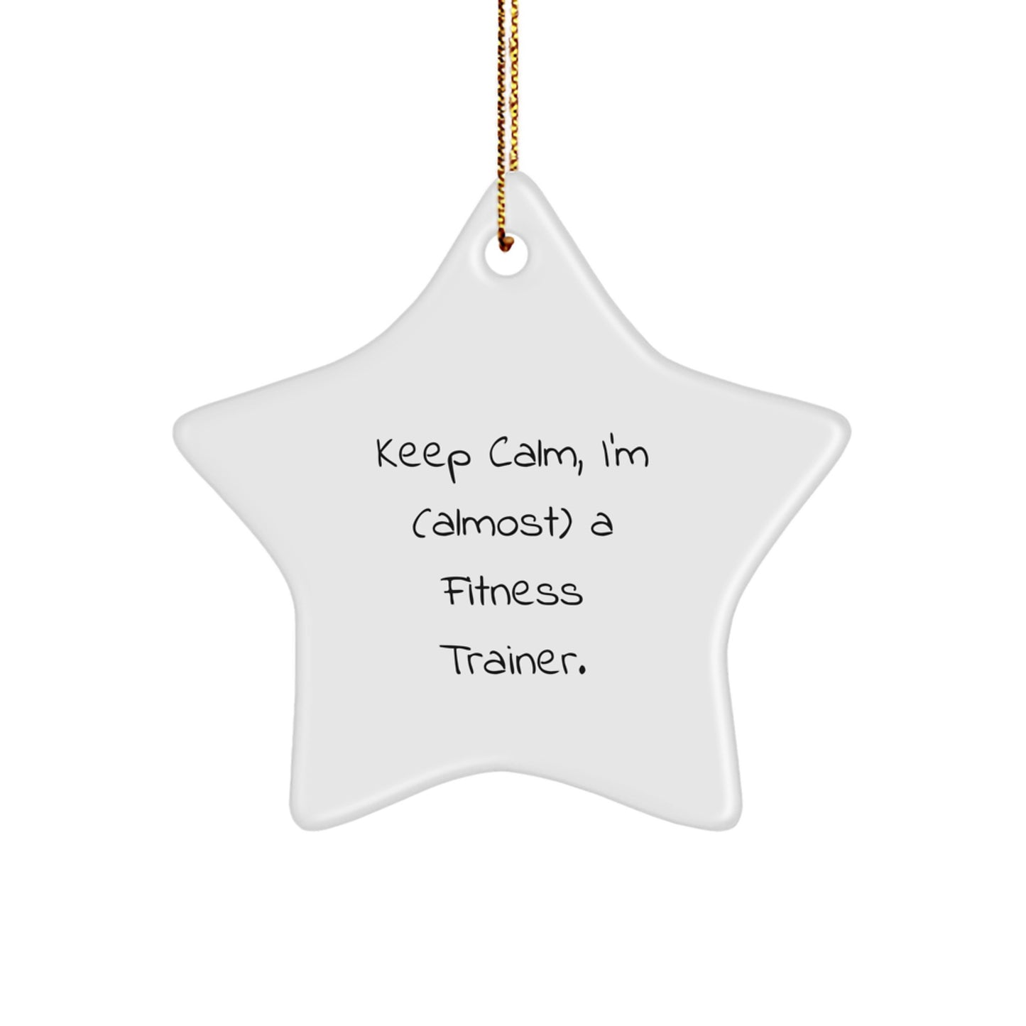 - Our Funny Fitness Trainer Christmas Gift for Friends is a unique and thoughtful way to show your appreciation for the Fitness Trainers in your life. The gift features a star-shaped ornament with a funny quote that reads 'Keep Calm, I'm (almost) A Fitness Trainer.' The quote is a great way to poke fun at the challenges of being a Fitness Trainer, and the star shape is a classic symbol of fitness and wellness.