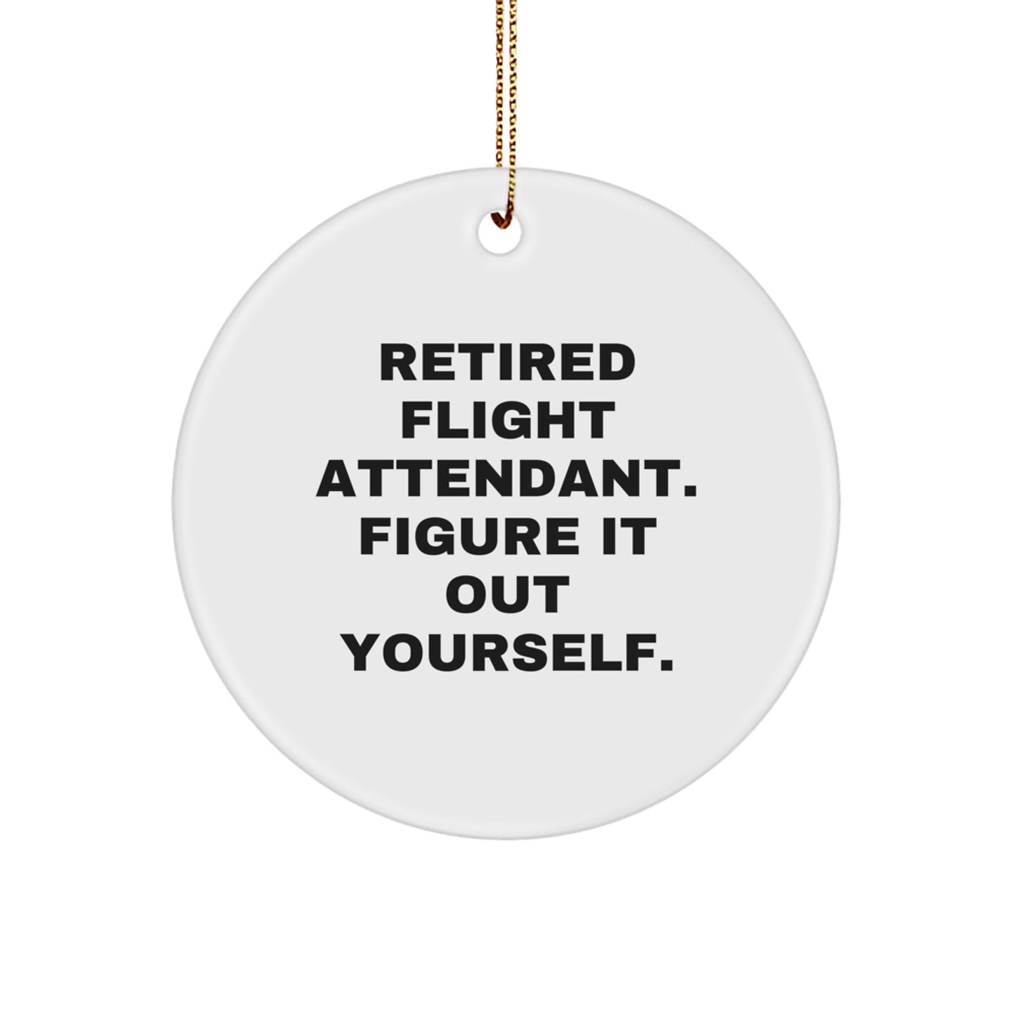 Funny Flight Attendant Gift, 'Retired Flight Attendant. Figure It Out Yourself.' Circle Ornament for Christmas, Gifts from Friends to Family