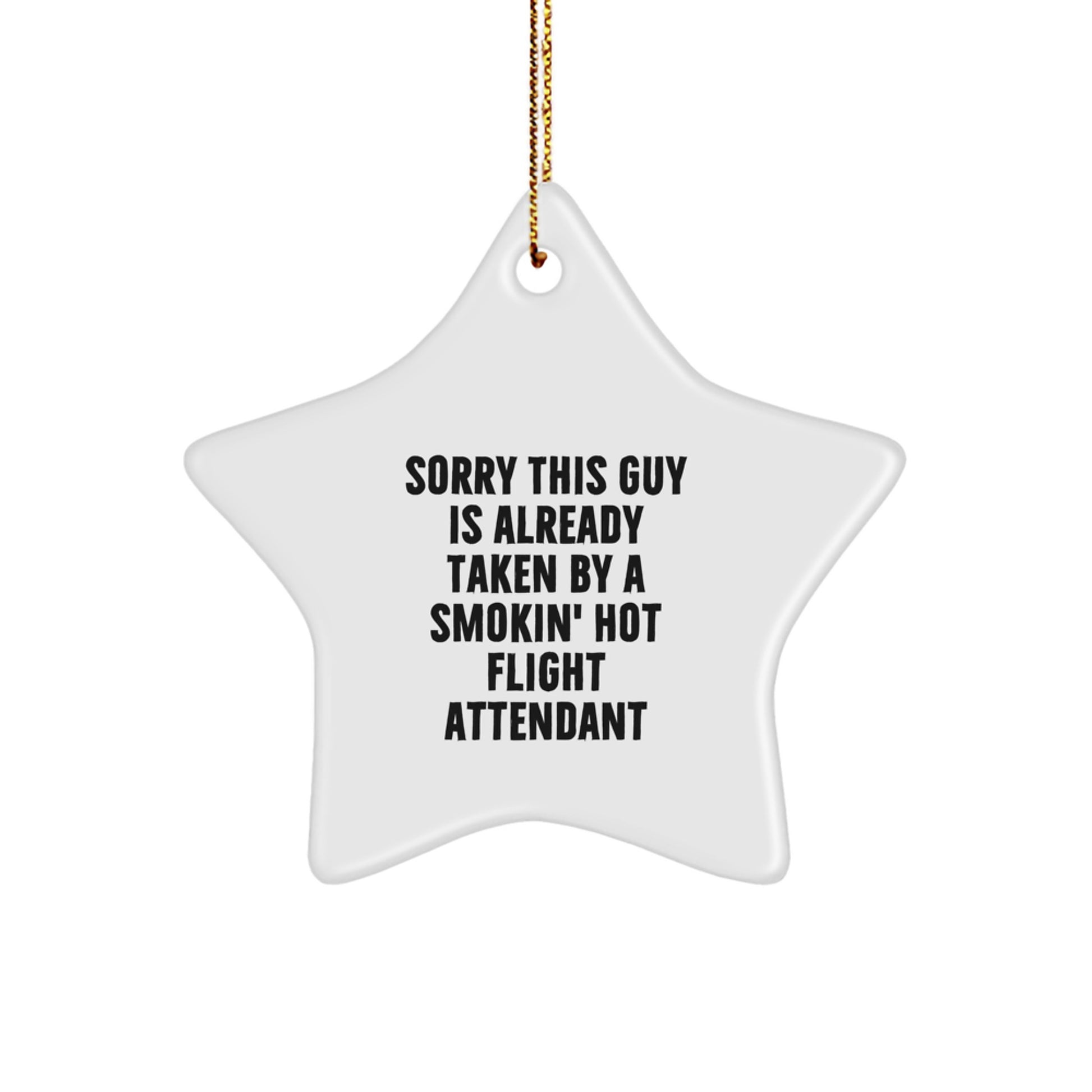 Don't settle for boring gifts this Christmas. Give the gift that will make their eyes sparkle - the Sorry This Guy Is Already Taken By A Smokin' Hot Flight Attendant Star Ornament. Don't miss out and get ready to spread some laughter and joy!