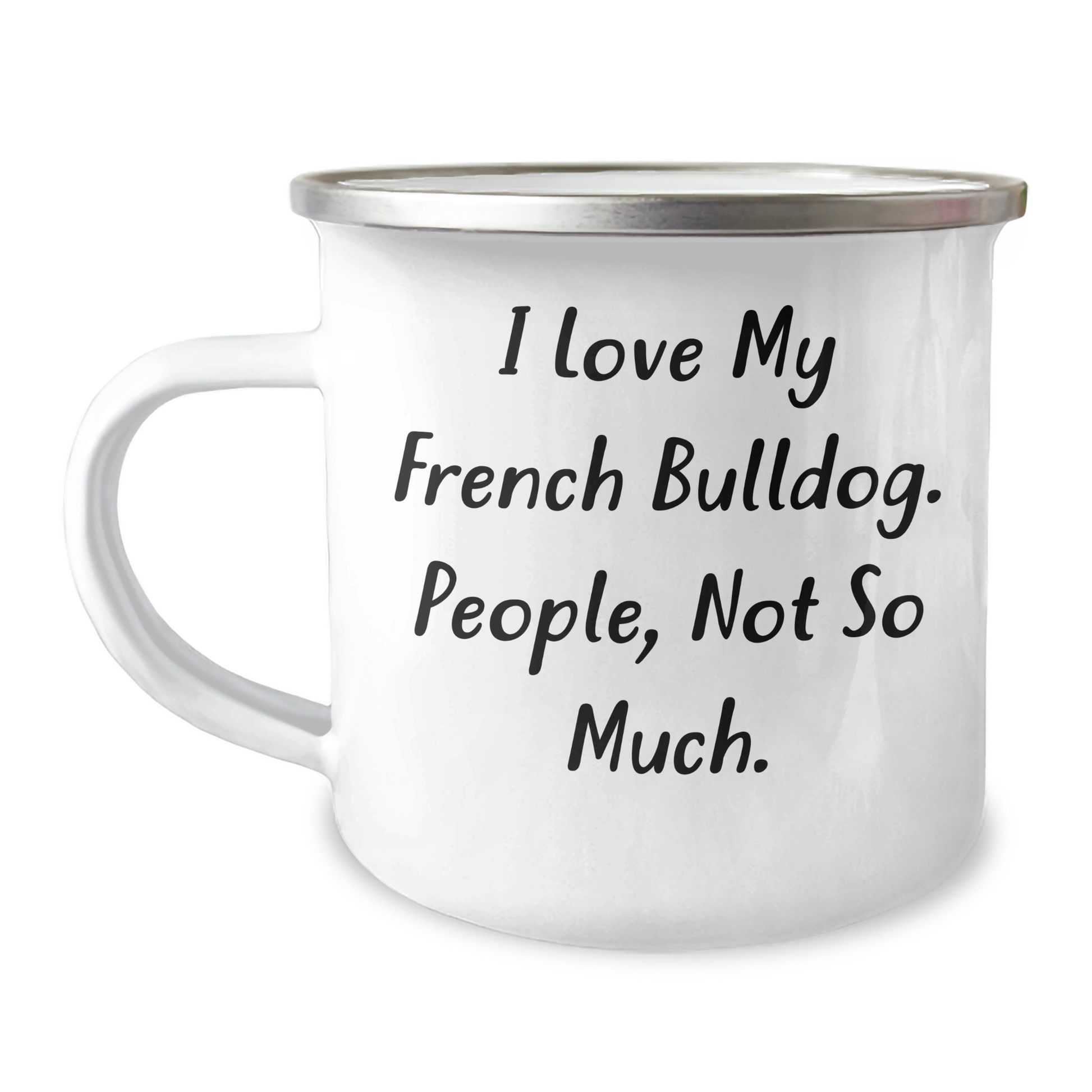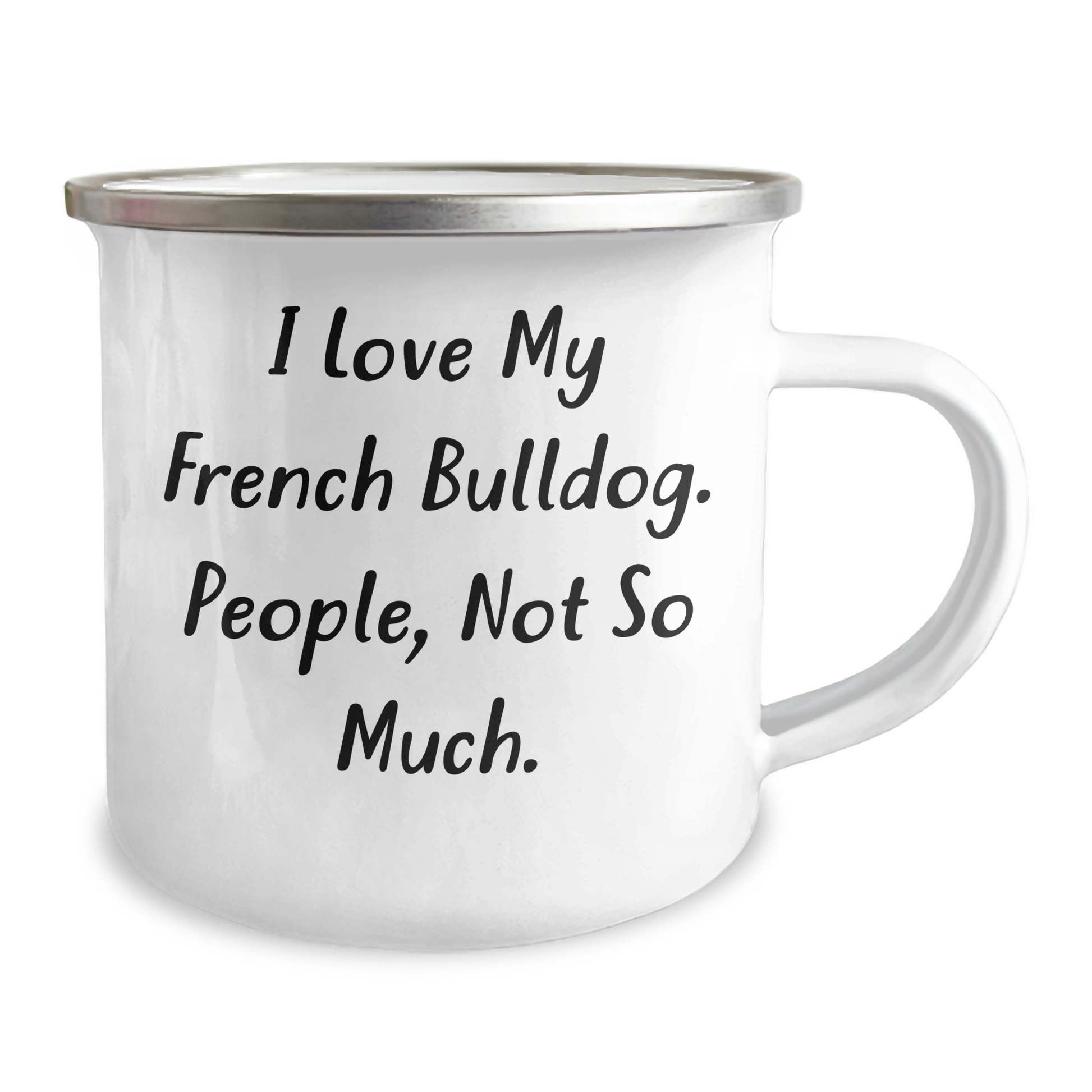 Funny French Bulldog Gifts from Friends for French Bulldog Graduation Camping Mug - 'I Love My French Bulldog. People, Not So Much.'