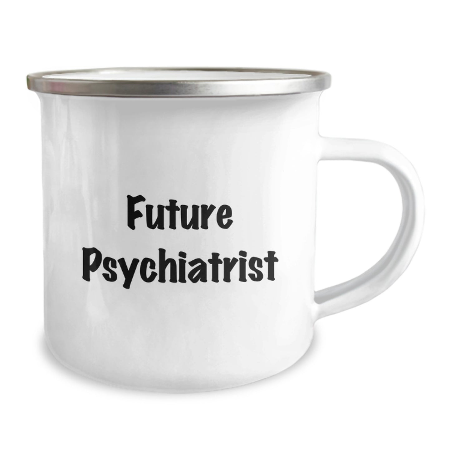 Funny Future Psychiatrist Camping Mug Gifts from Family to Friends, Inscription for Graduation, Stainless Steel with Enamel Finish, 12 oz Capacity