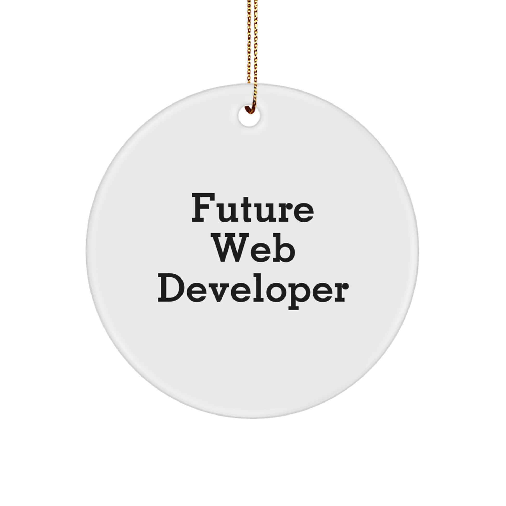 - Add a touch of festive flair to your holiday decor with this beautiful white circle ornament, featuring the quote 'Future Web Developer' in a vibrant finish, and take advantage of the opportunity to share your love of coding and web development with friends and family.