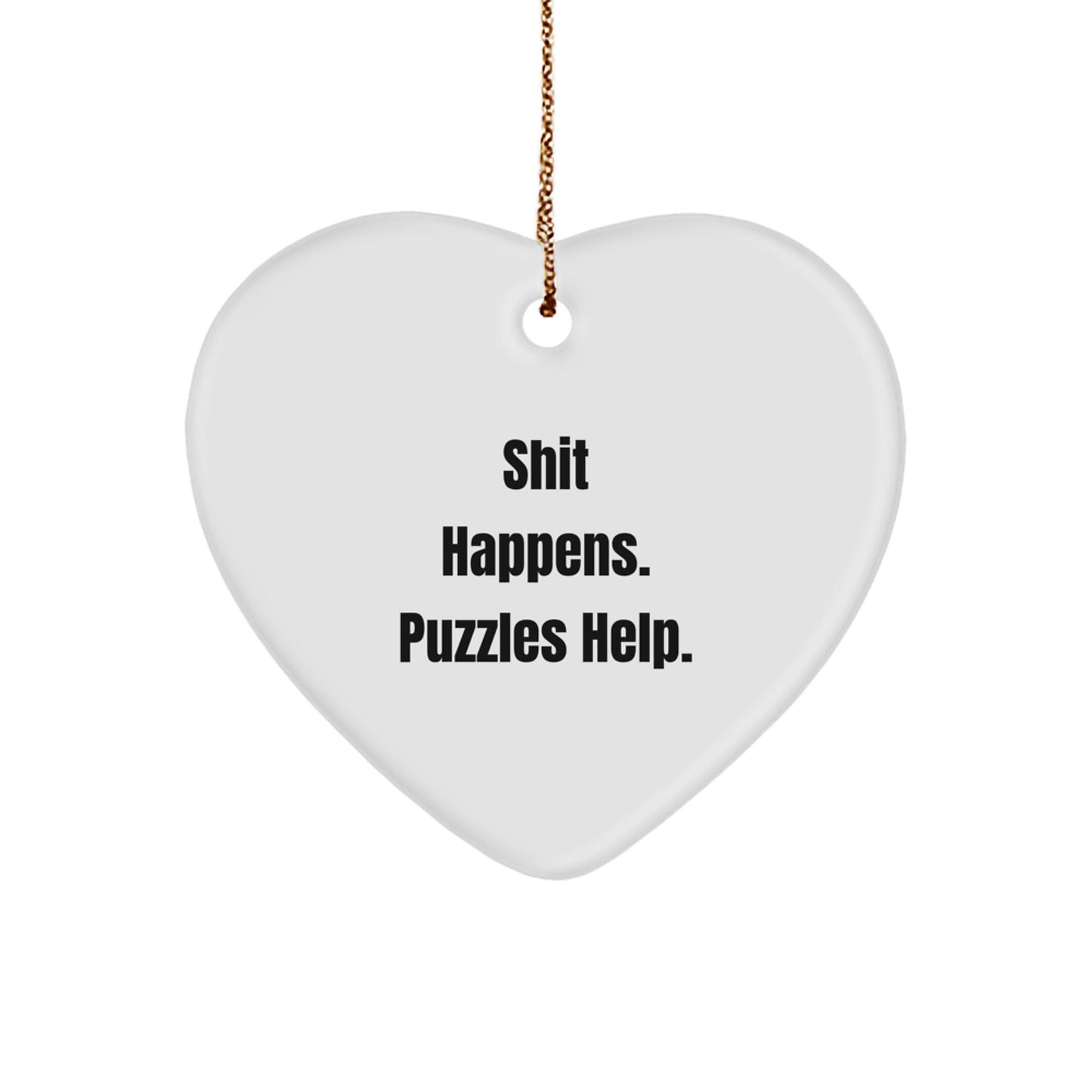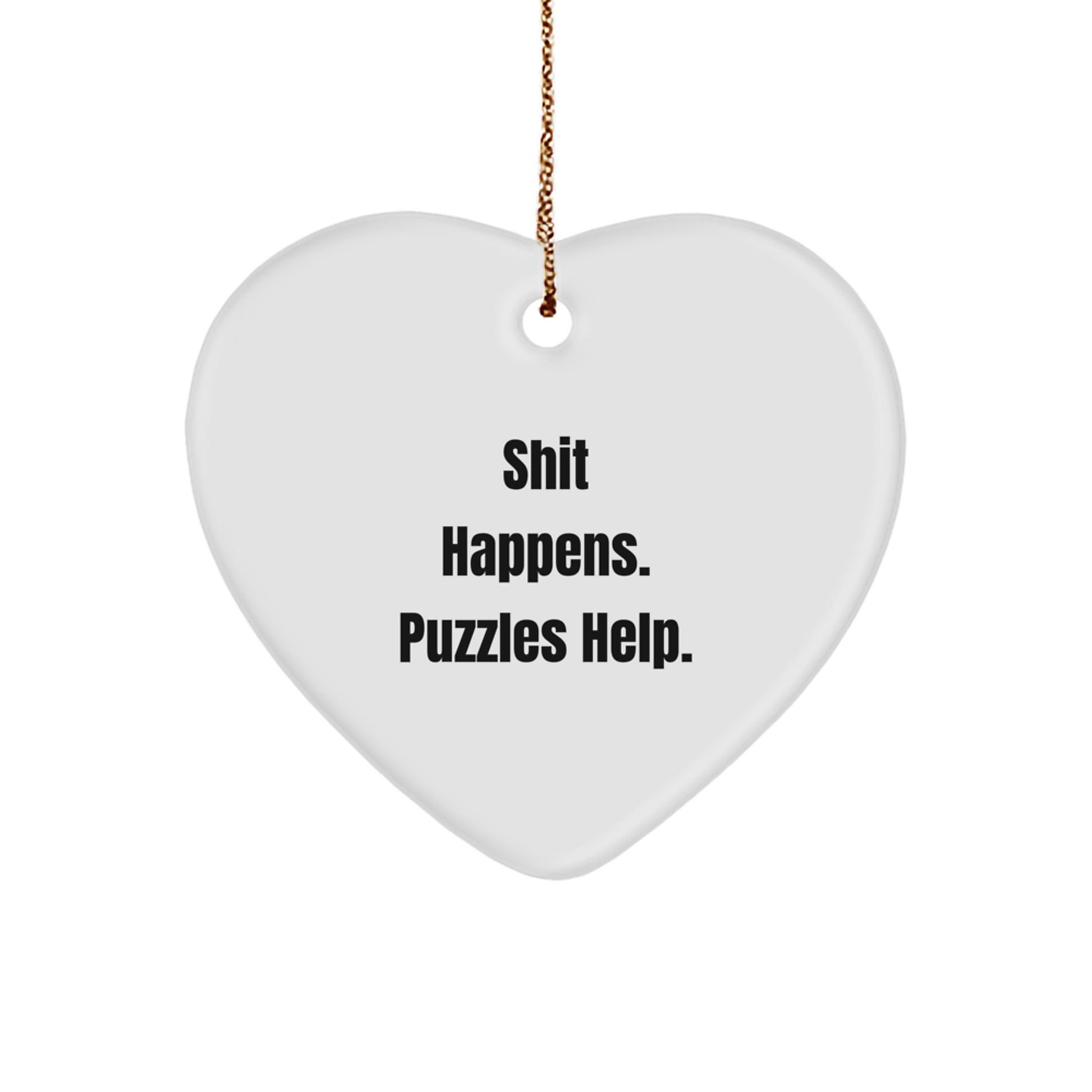 - Give the gift of laughter and puzzle-solving this Christmas with this 'Shit Happens. Puzzles Help.' heart ornament. Make it a thoughtful gift for friends, family, or coworkers who enjoy puzzles, or keep it for yourself as a fun addition to your holiday decor.
