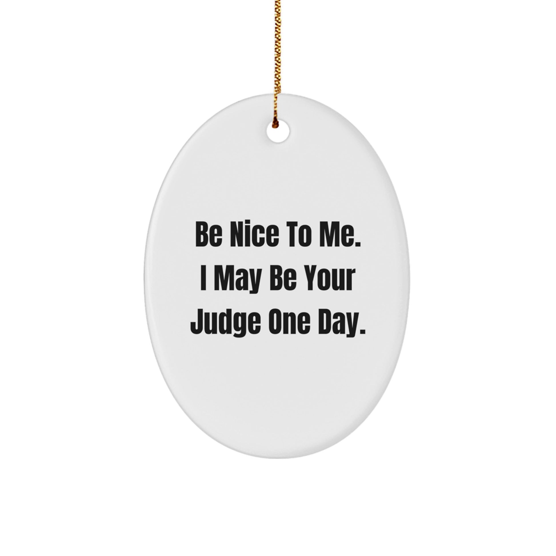 Funny Judge Gifts from Friends, Nice Judge Gifts for Men, 'Be Nice To Me. I May Be Your Judge One Day.' Oval Ornament for Christmas