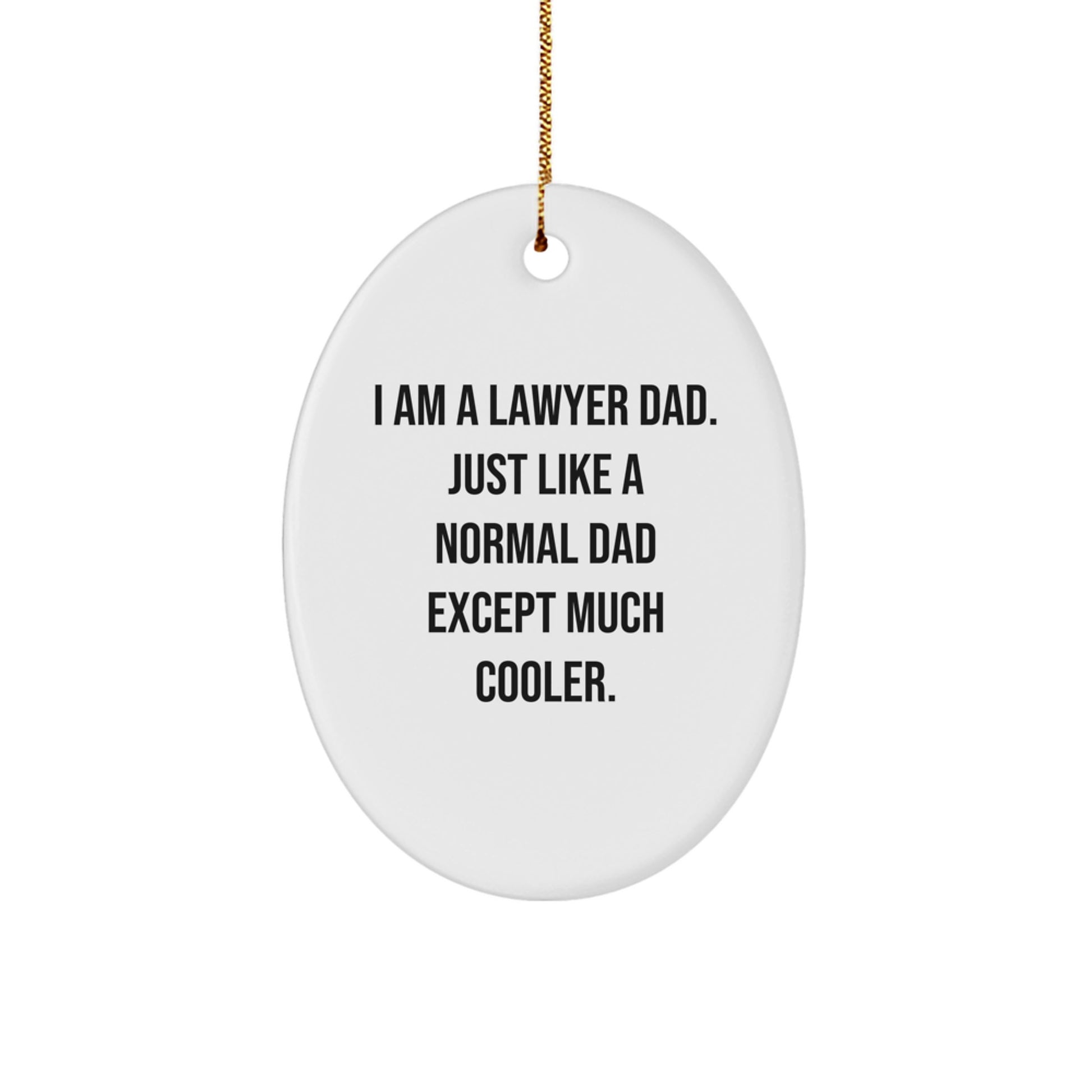 - The funny quote on this Oval Ornament, 'I Am A Lawyer Dad. Just Like A Normal Dad Except Much Cooler.', is sure to bring a smile to the face of any lawyer. Whether you're a friend, family member, or coworker, this gift is sure to be treasured for years to come.