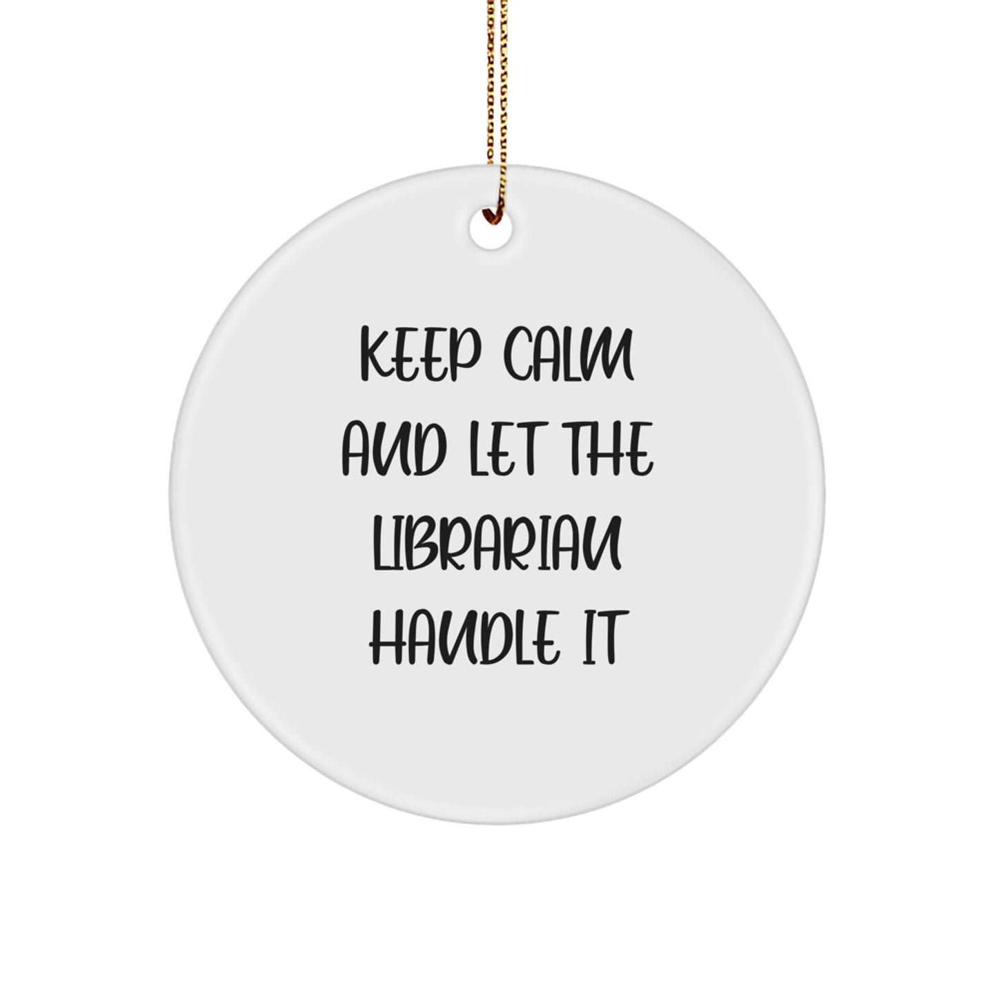 - Add a touch of humor and encouragement to your Christmas tree with our funny circle ornament, 'Keep Calm And Let The Librarian Handle It'. This beautifully crafted MDF circle ornament is vibrantly printed from edge-to-edge via Sublimation, ensuring bright and vivid colors that will make it a standout on your Christmas tree.
