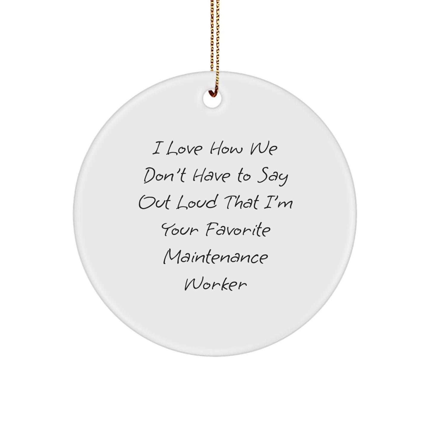 Are you searching for the ideal gift for your favorite maintenance worker? Look no further! This funny circle ornament says it all: 'I Love How We Don't Have To Say Out Loud That I'm Your Favorite Maintenance Worker.' It's a hilarious way to show your appreciation for their hard work.