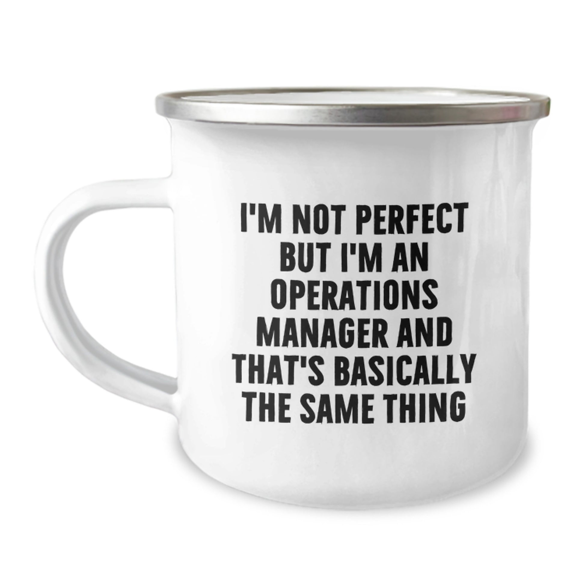 Are you looking for a unique gift for the operations manager in your life? Look no further! This funny camping mug is perfect for any operations manager who knows that being imperfect is okay. The quote 'I'm Not Perfect But I'm An Operations Manager And That's Basically The Same Thing' is a humorous take on the challenges of being an operations manager. Whether you're a friend, family member, or coworker, this gift is sure to bring a smile to their face.