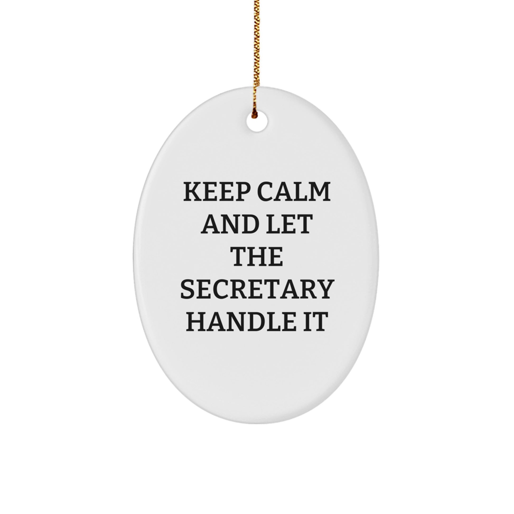 Funny Oval Ornament Gifts from Men for Secretary Coworkers, Keep Calm And Let The Secretary Handle It, Christmas Unique Gifts for Office