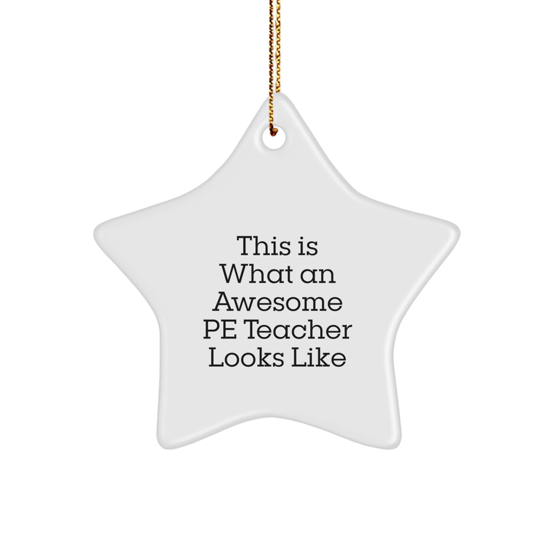 Funny PE Teacher Star Ornament Gifts from Family for PE Teacher, This Is What An Awesome PE Teacher Looks Like, Christmas Unique Gifts