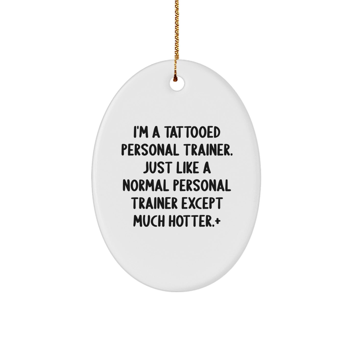 - Get ready to sweat your way into the holiday season with this 'I'm A Tattooed Personal Trainer. Just Like A Normal Personal Trainer Except Much Hotter.' Oval Ornament, perfect for the fitness enthusiast in your life who loves to stay fit and stylish.