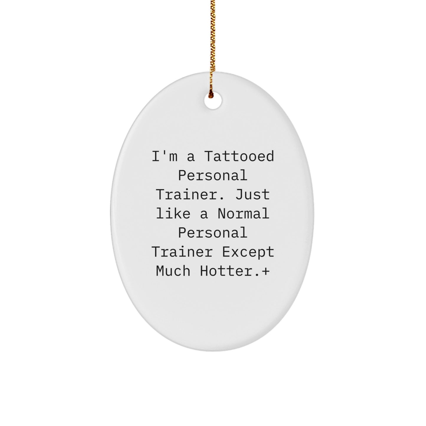 - Make this Christmas one to remember with a funny and unique gift for the personal trainer in your life. Get your funny personal trainer oval ornament today and show your appreciation for the hard work and dedication of your favorite personal trainer. With its sturdy construction, vibrant printing, and festive gold cord, this ornament is the perfect way to bring a smile to their face.