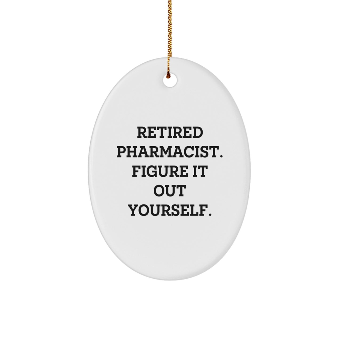 Funny Pharmacist Gifts, Oval Ornament, 'Retired Pharmacist. Figure It Out Yourself.' Quote, Christmas Unique Gifts from Friends or Family