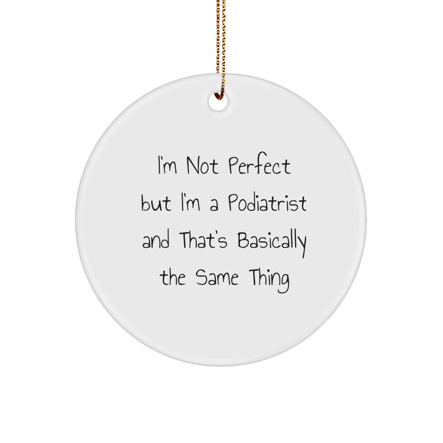 - Experience the perfect blend of fun and functionality with this 'I'm Not Perfect But I'm A Podiatrist And That's Basically The Same Thing' Circle Ornament, carefully crafted by a podiatrist for podiatrists and podiatry enthusiasts alike. This vibrant and eye-catching ornament is a unique way to showcase your profession and add a touch of whimsy to your holiday decor.