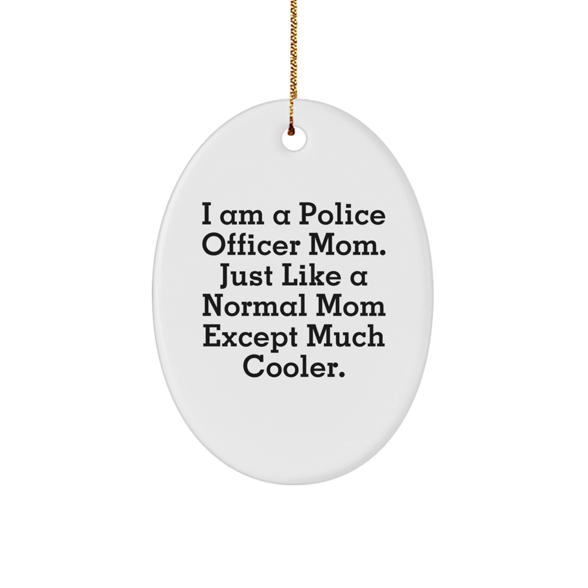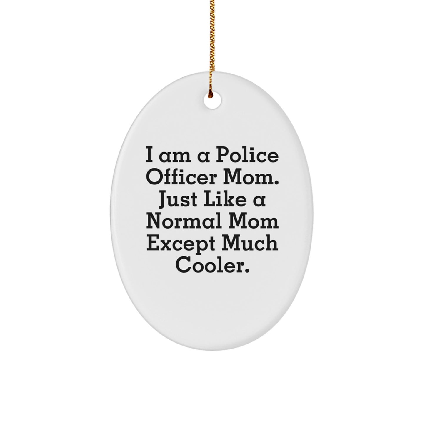 - Show your pride as a 'I Am A Police Officer Mom. Just Like A Normal Mom Except Much Cooler.' with this unique Oval Ornament, perfect for any Police Officer family member or friend, making it a thoughtful gift for Christmas.