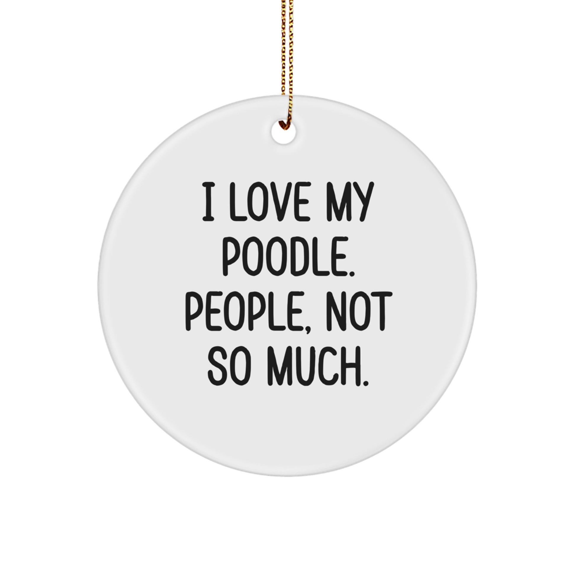 - Add a touch of whimsy and humor to your holiday decor with this 'I Love My Poodle. People, Not So Much.' Circle Ornament. Its fun design and durable construction make it a great choice for families, pet owners, or anyone looking for a unique addition to their Christmas decorations. Hang it proudly and enjoy the joy it brings to your holiday season.