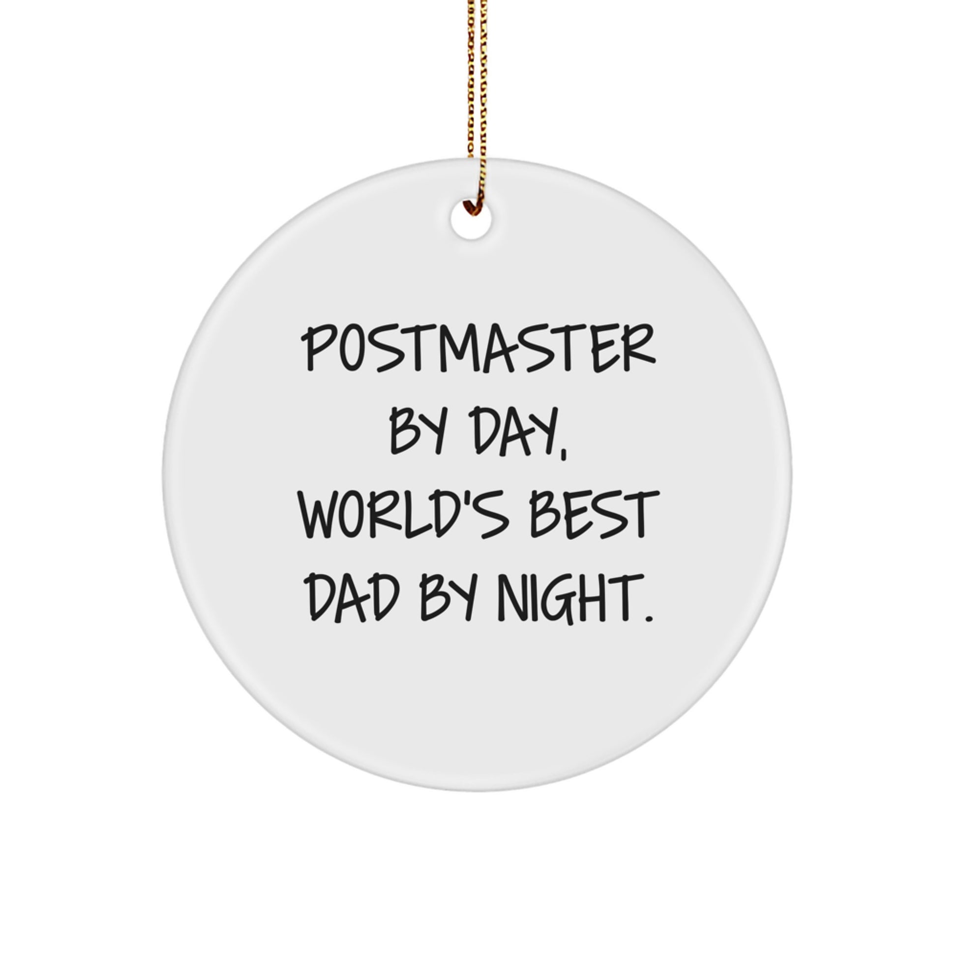 Funny Postmaster Gifts from Men, Postmaster Circle Ornament for Christmas, 'Postmaster By Day, World's Best Dad By Night.'