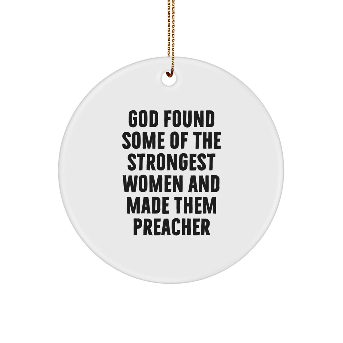 Funny Preacher Gifts, Circle Ornament with 'God Found Some Of The Strongest Women And Made Them Preacher' Quote, Christmas Unique Gifts from Family to Preacher