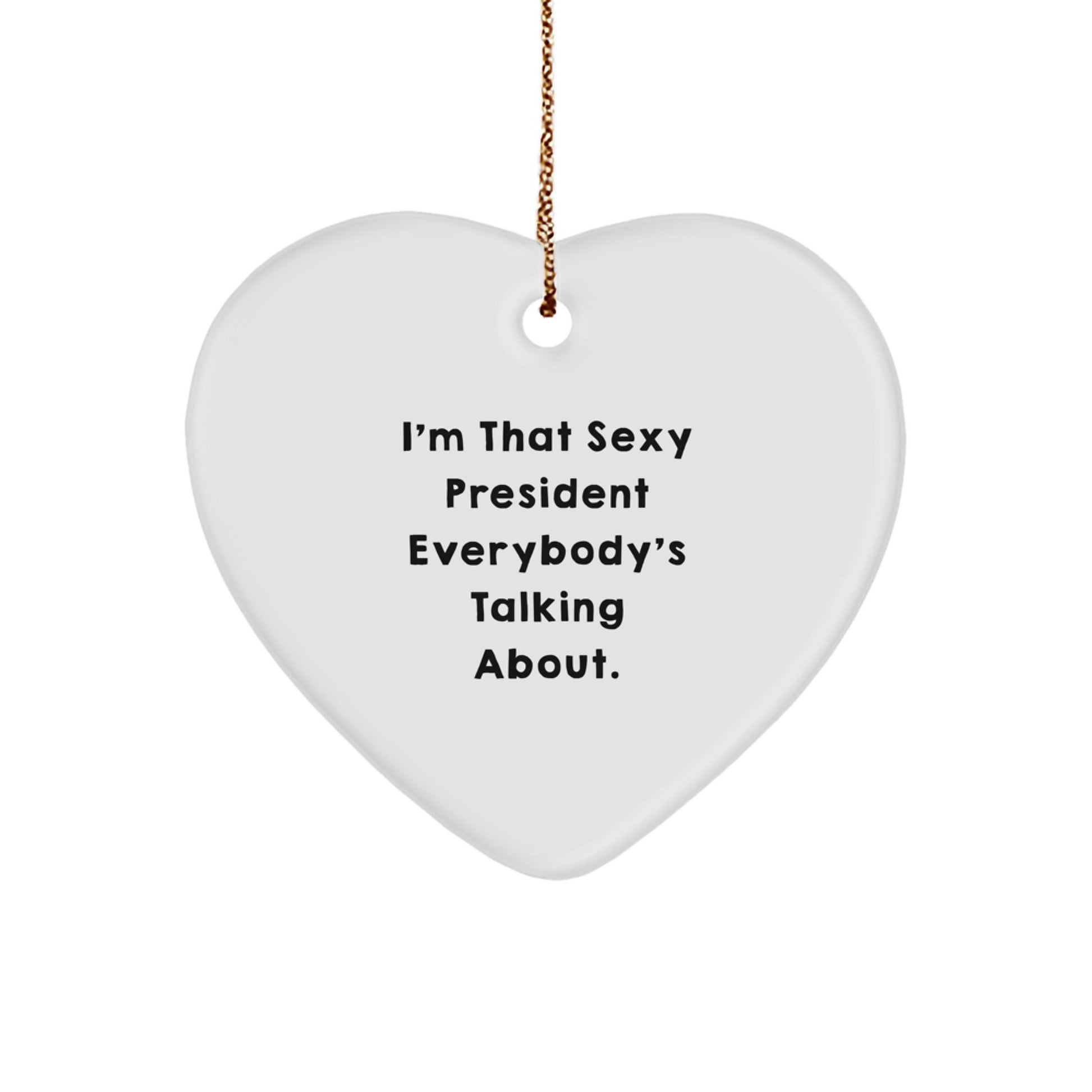 - This funny 'I'm That Sexy President Everybody's Talking About.' Heart Ornament is the ideal gift for the President in your life. Made from sturdy MDF, it's both long-lasting and visually appealing. The vibrant sublimation printing ensures bright, vivid colors that will catch the eye.