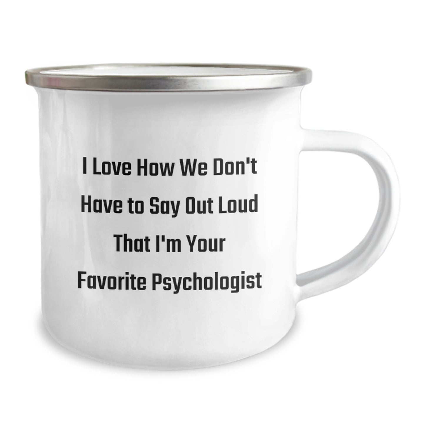 - This camping mug is the ideal gift for any psychologist who loves the outdoors. The quote 'I Love How We Don't Have To Say Out Loud That I'm Your Favorite Psychologist' is a funny and relatable way to express your feelings.