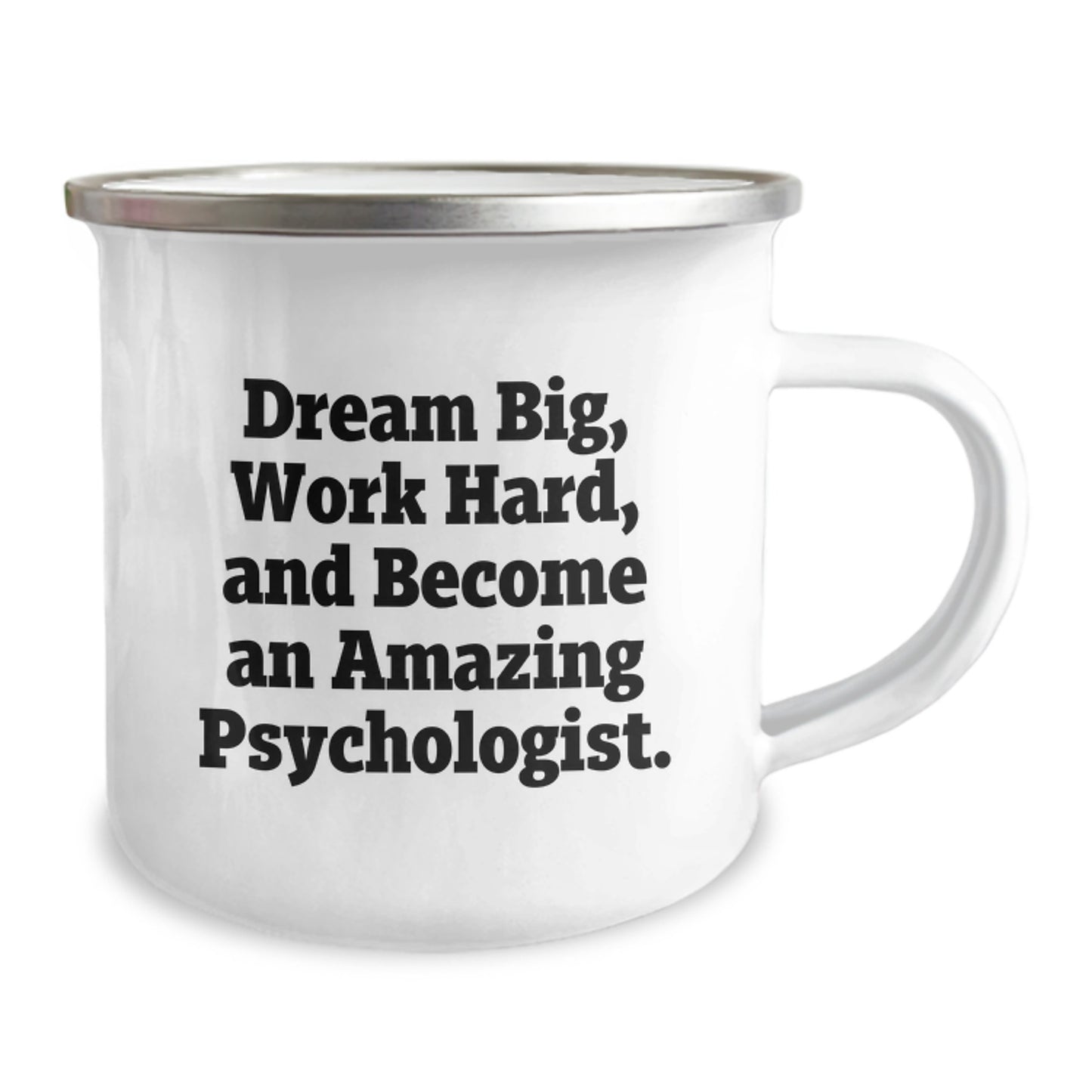 Get this fantastic Psychologist Camping Mug for the amazing Psychologist in your life who loves to dream big and work hard. It's a thoughtful Christmas gift that says, 'Dream Big, Work Hard, And Become An Amazing Psychologist.'