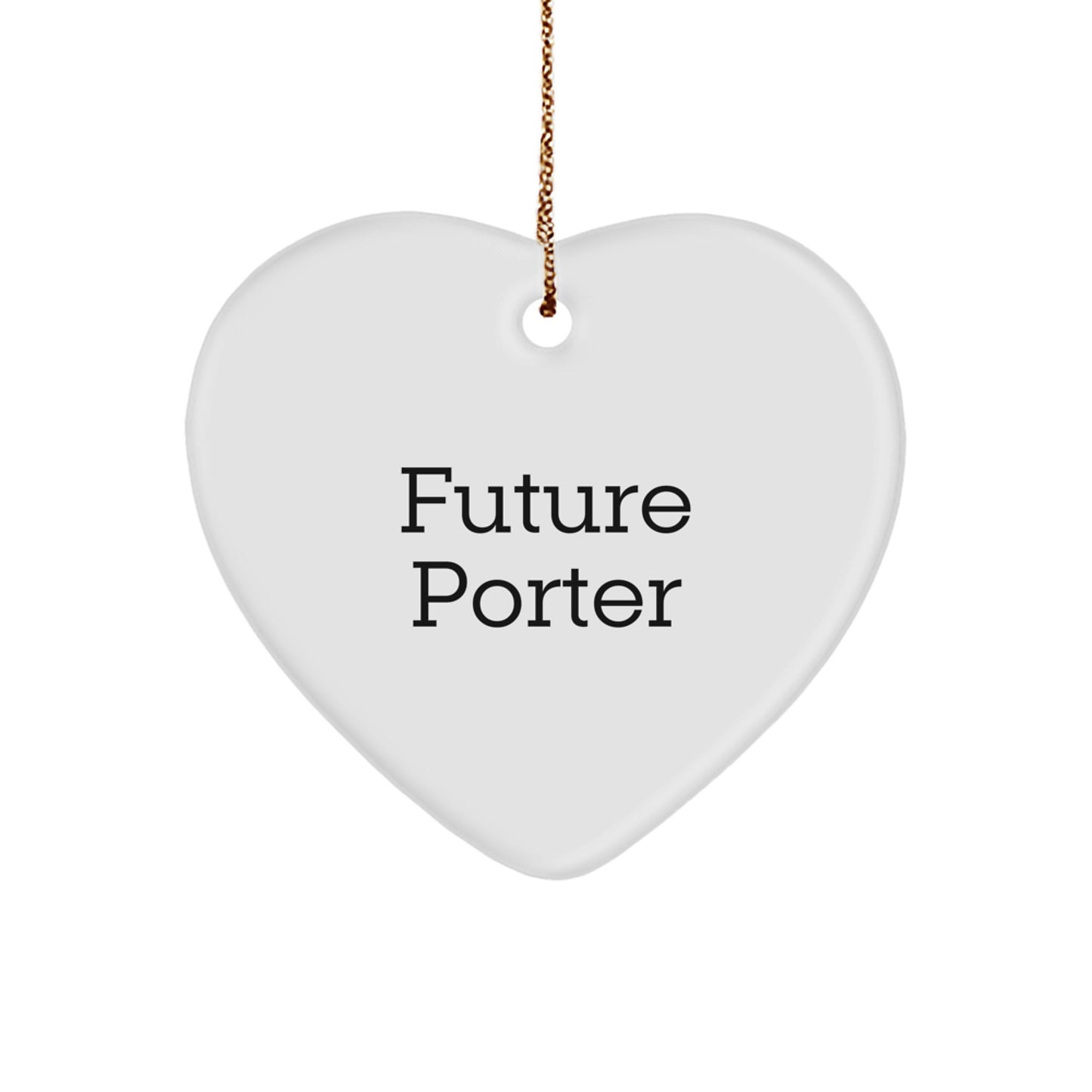 Are you a Porter enthusiast or a parent looking for a special gift for your little Porter? Look no further! This Future Porter Heart Ornament is a heartwarming addition to any Porter room or office, and makes a thoughtful gift for any Porter in your life. The Porter in your life will cherish this ornament as a reminder of your love and support.