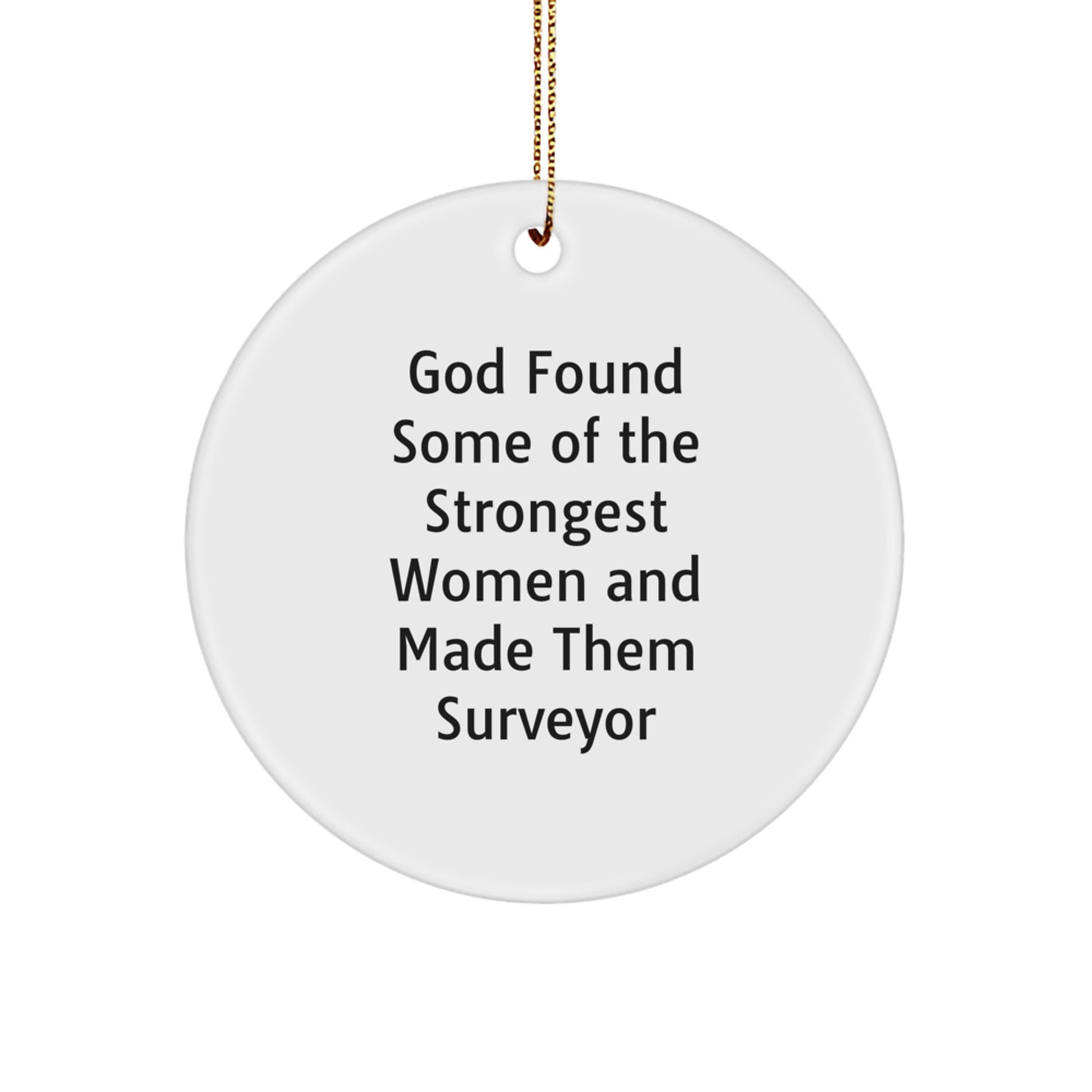 Get ready to celebrate your love for Surveyors with this unique and funny Circle Ornament! The quote 'God Found Some Of The Strongest Women And Made Them Surveyor' is a great way to show your appreciation for the strong and capable women in your life. This Circle Ornament is the ideal gift for Surveyor enthusiasts, and it's also a great way to decorate your home or office for Christmas.