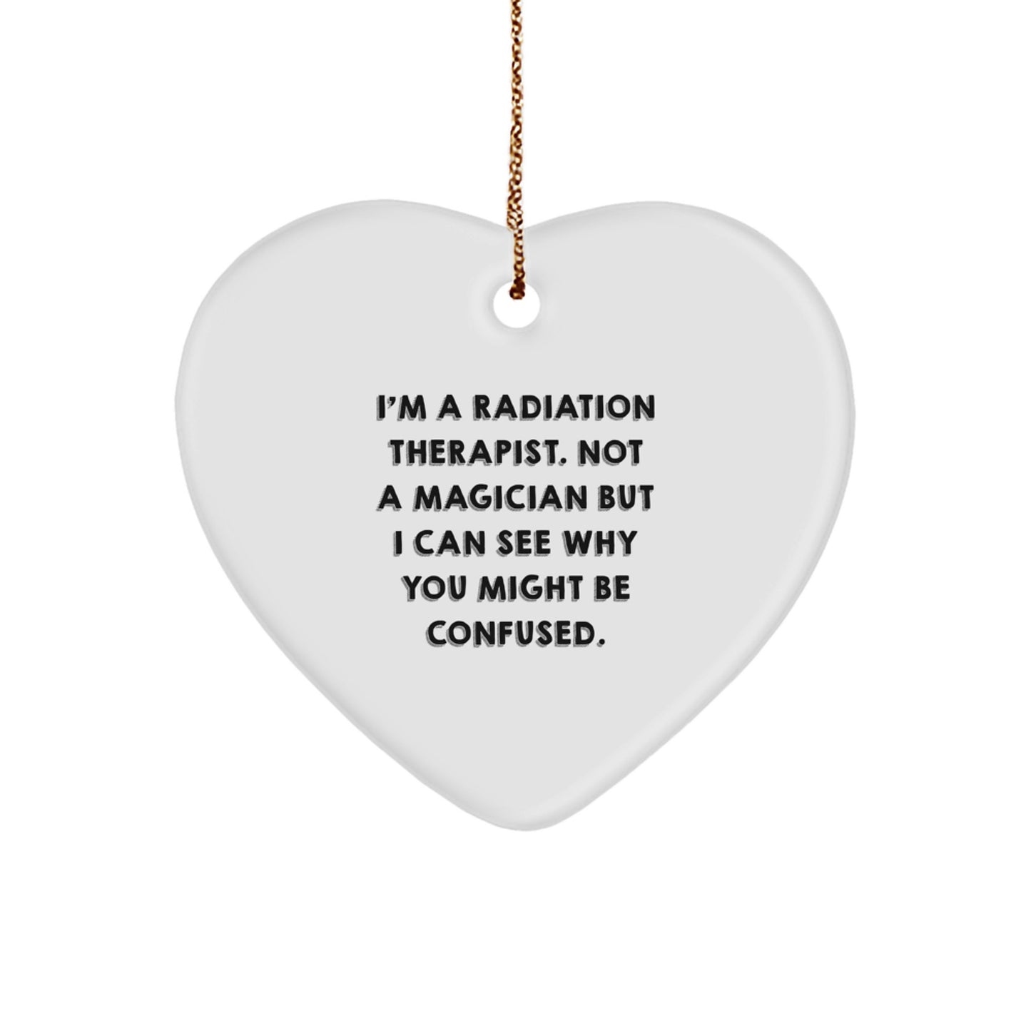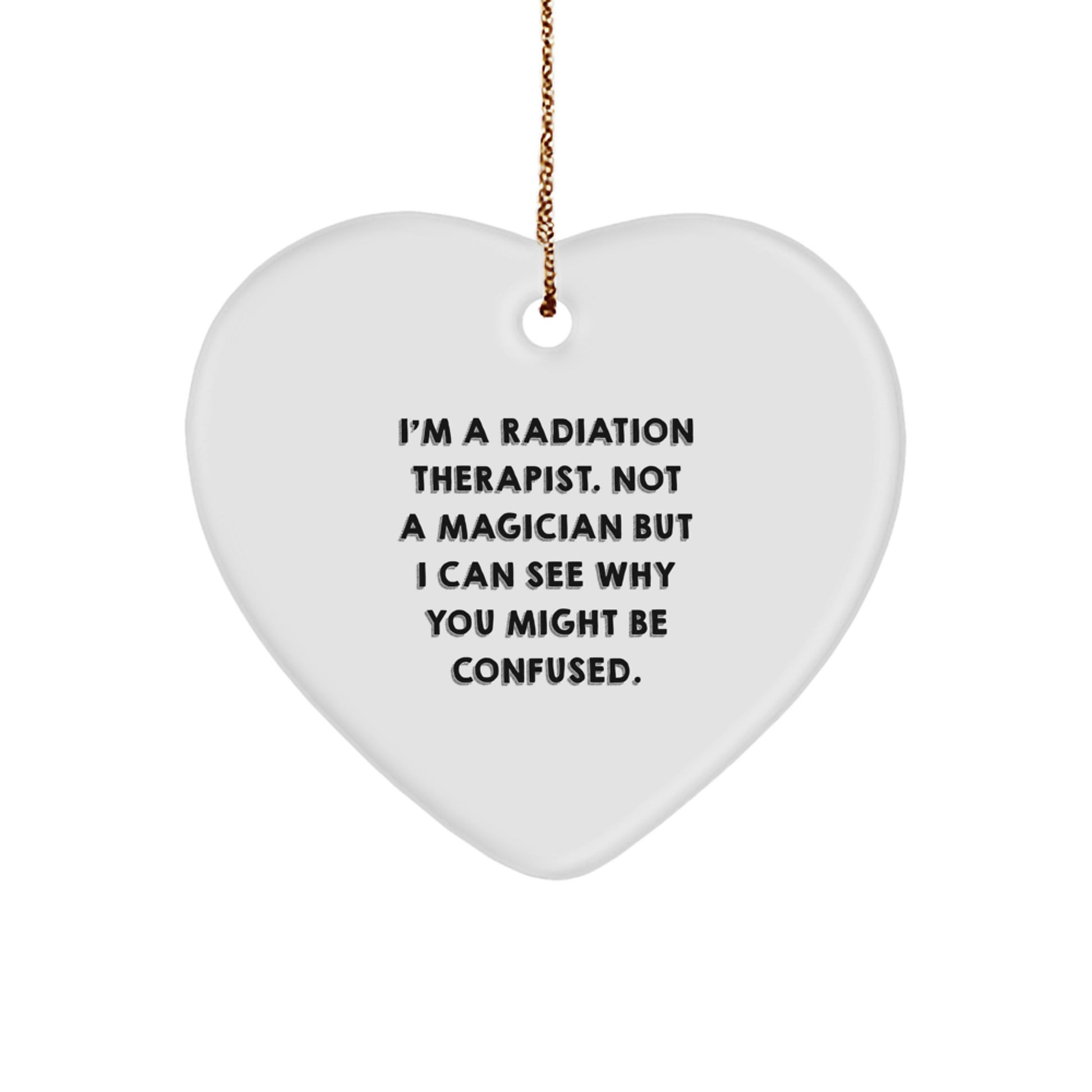 Are you searching for a unique gift for a Radiation Therapist? Look no further! This heart-shaped ornament is a perfect way to show your appreciation for their hard work and dedication. As a Radiation Therapist, they deserve a gift that's both funny and heartwarming. This quote, 'I'm a Radiation Therapist. Not a Magician But I Can See Why You Might Be Confused.' is a great way to add some humor to their holiday season.