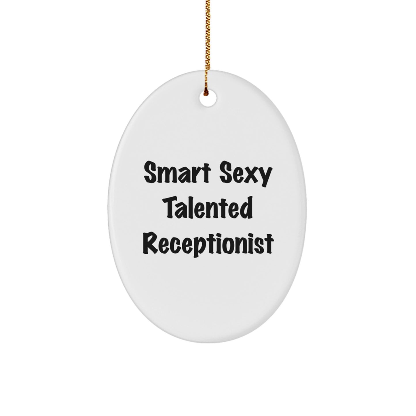 - This oval ornament is a unique and thoughtful gift for any receptionist, showcasing their smart, sexy, and talented personality.