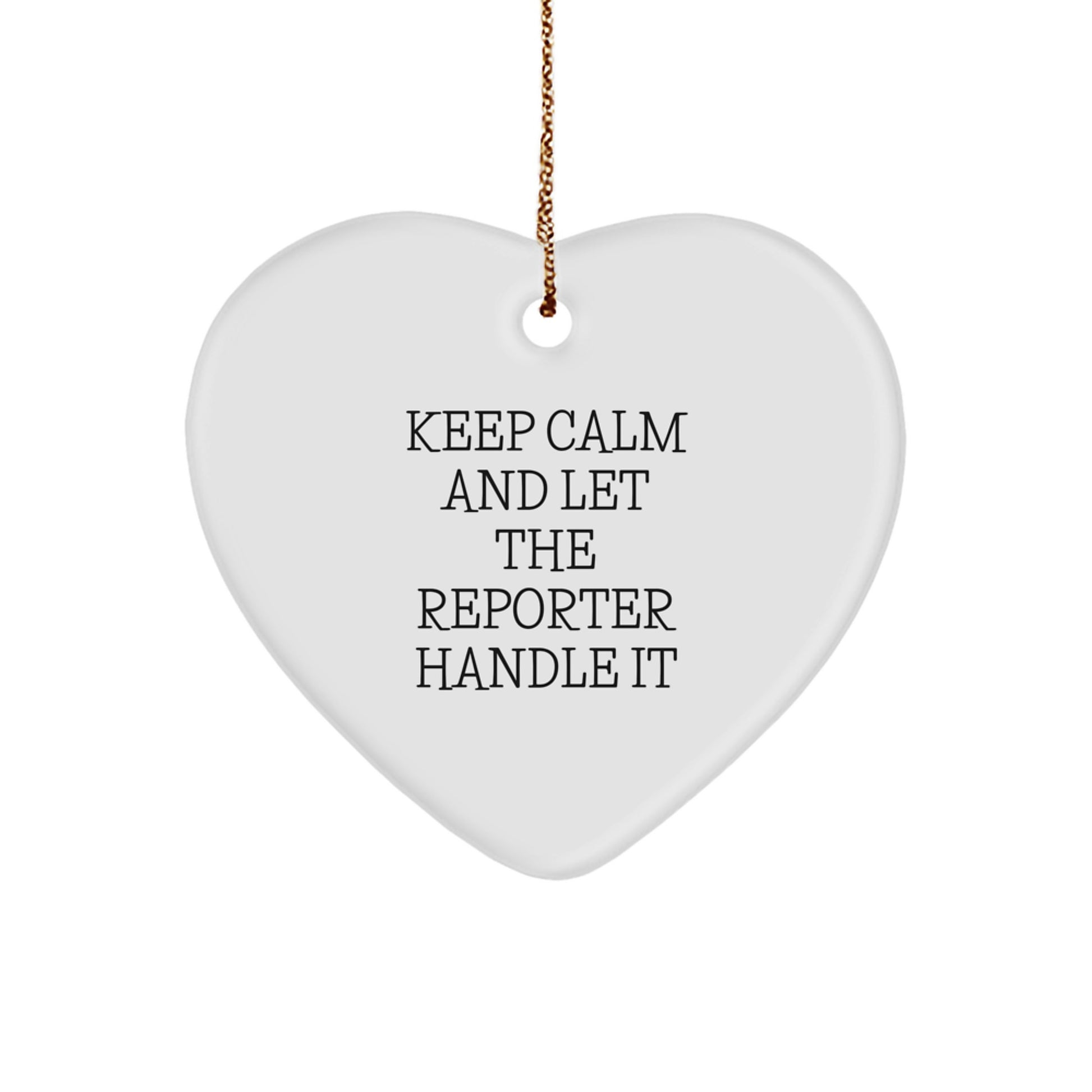- The 'Keep Calm And Let The Reporter Handle It' quote is a smart play on the classic 'Keep Calm And Carry On' phrase, and it's sure to bring a laugh to anyone's face. This Heart Ornament is a unique and thoughtful gift for any Reporter, and it's a fun way to show your appreciation for their hard work and dedication to reporting.