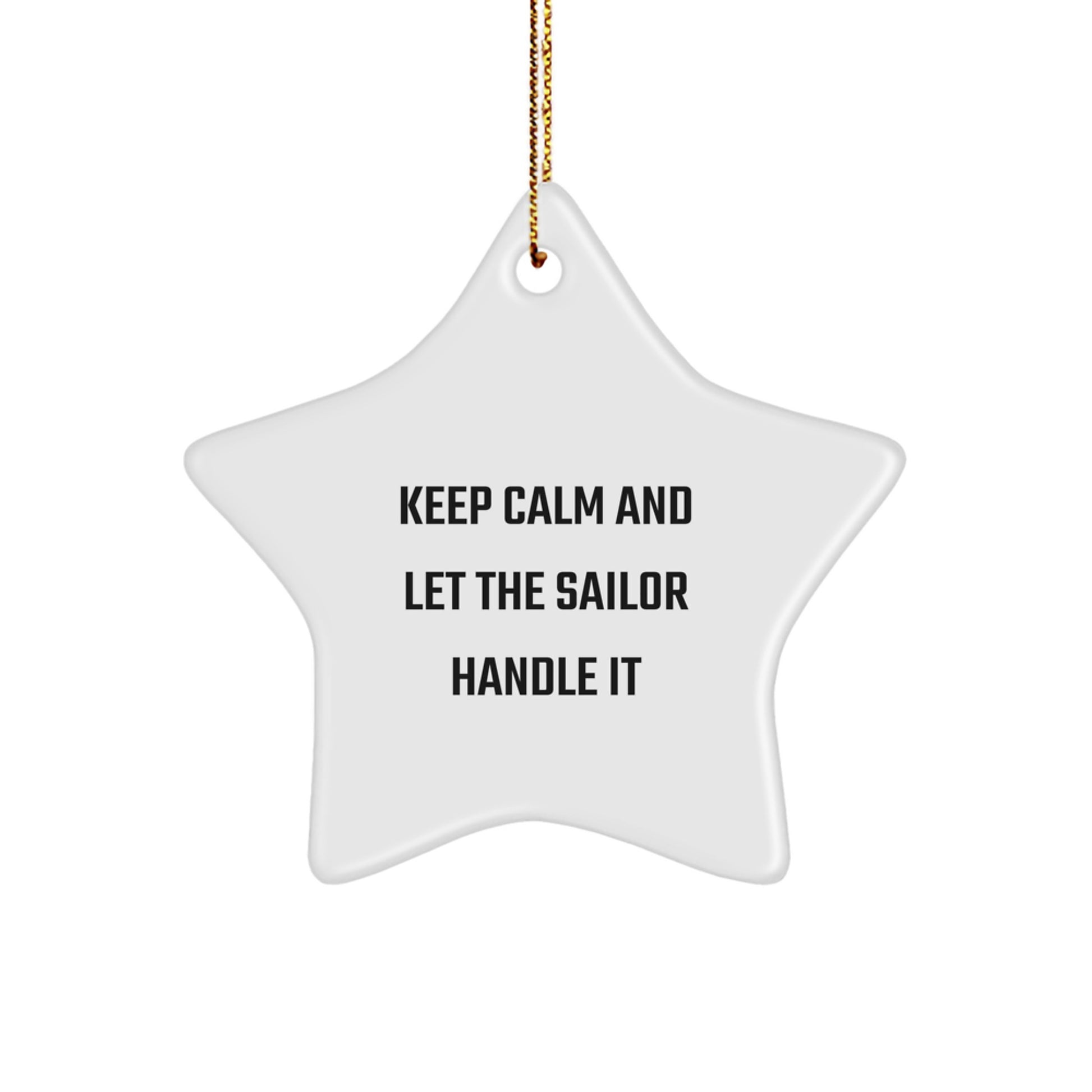 - This funny 'Keep Calm And Let The Sailor Handle It' Star Ornament is a unique and thoughtful gift for Sailor friends, perfect for Christmas or any occasion.