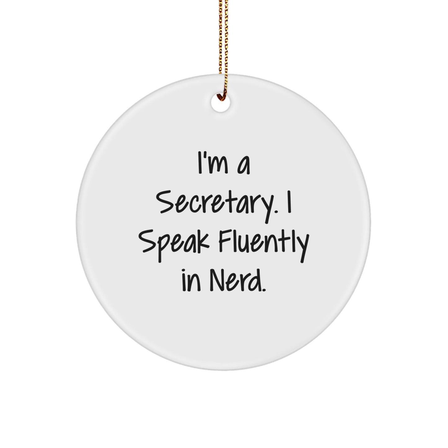 Funny Secretary Gifts, I'm A Secretary. I Speak Fluently In genius., Christmas Circle Ornament, Gifts from Men to Secretary Friends, Unique Holiday Decor