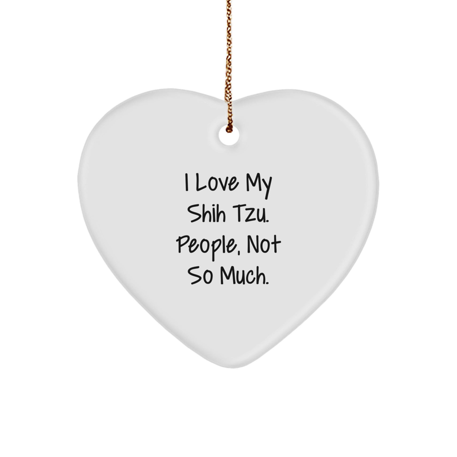 Look no further! Our Shih Tzu Dog Heart Ornament is a wonderful gift for any Shih Tzu Dog lover. The quote 'I Love My Shih Tzu. People, Not So Much.' is a funny and relatable saying that pokes fun at the unique bond between dog owners and their pets. It's a heartwarming and humorous way to showcase your love for your Shih Tzu Dog.