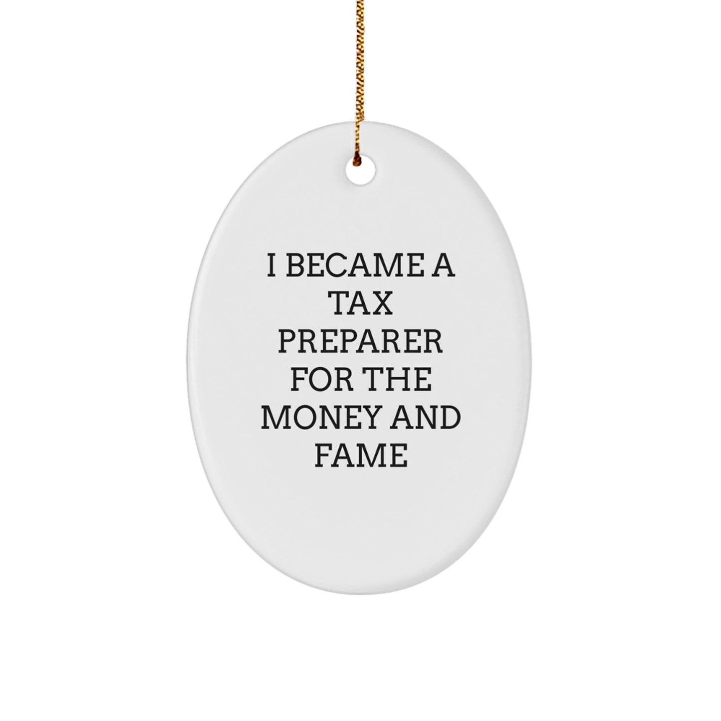 Funny Tax Preparer Gifts for Men from Family - Oval Ornament I Became A Tax Preparer For The Money And Fame, Christmas Unique Gifts