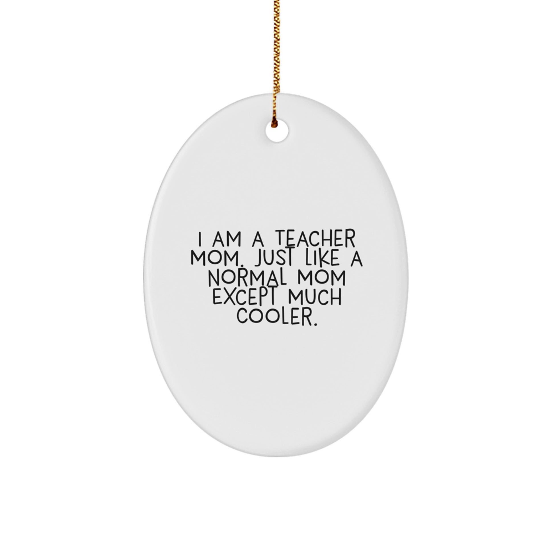 - As a teacher mom, you know how much harder it is to balance work and family life. That's why we created these Funny Teacher Gifts from Mom Oval Ornaments, to remind your favorite teacher that they are much cooler than a normal mom!