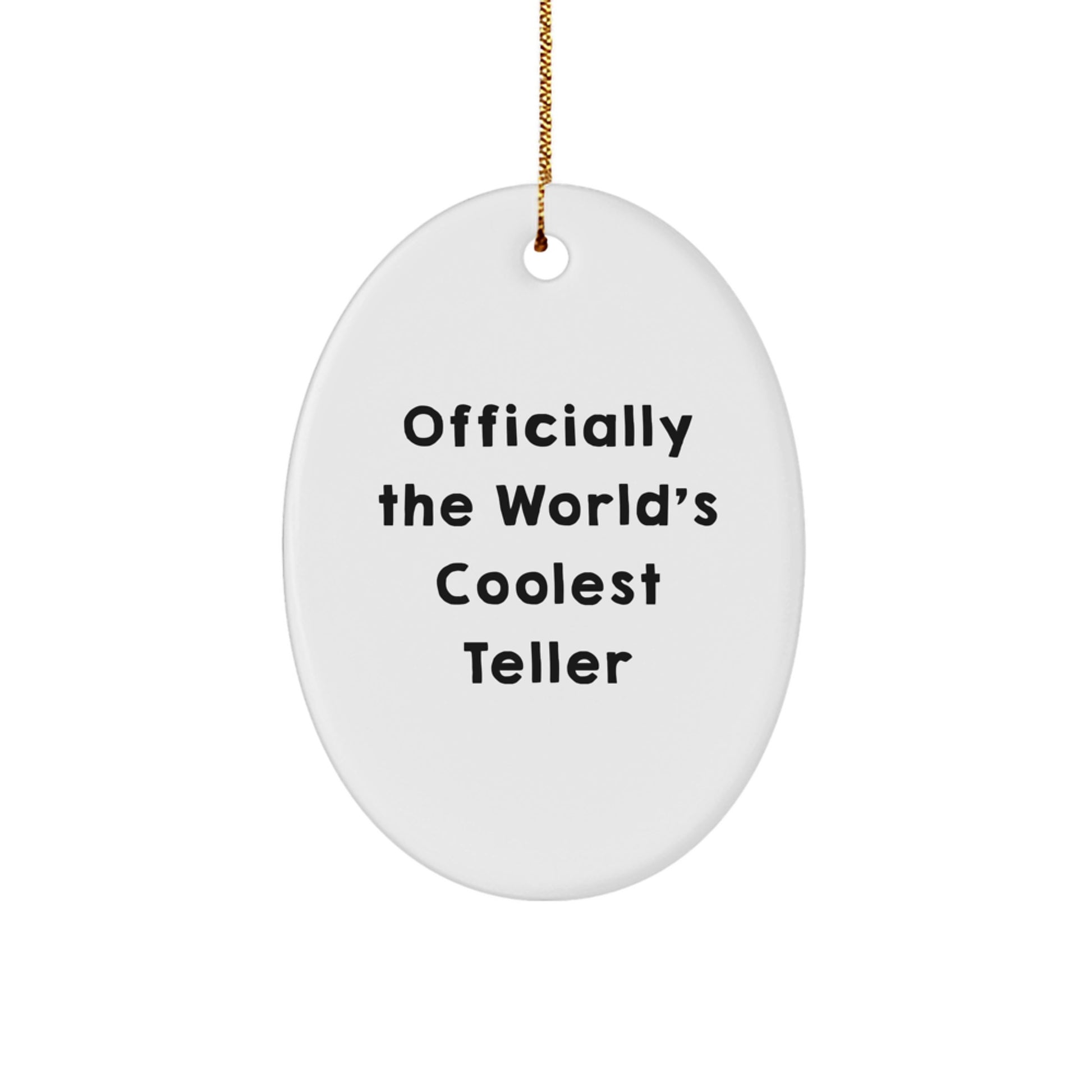 - This 'Officially The World's Coolest Teller' Oval Ornament is a fun and unique gift for the Teller in your life, sure to bring a smile to their face.