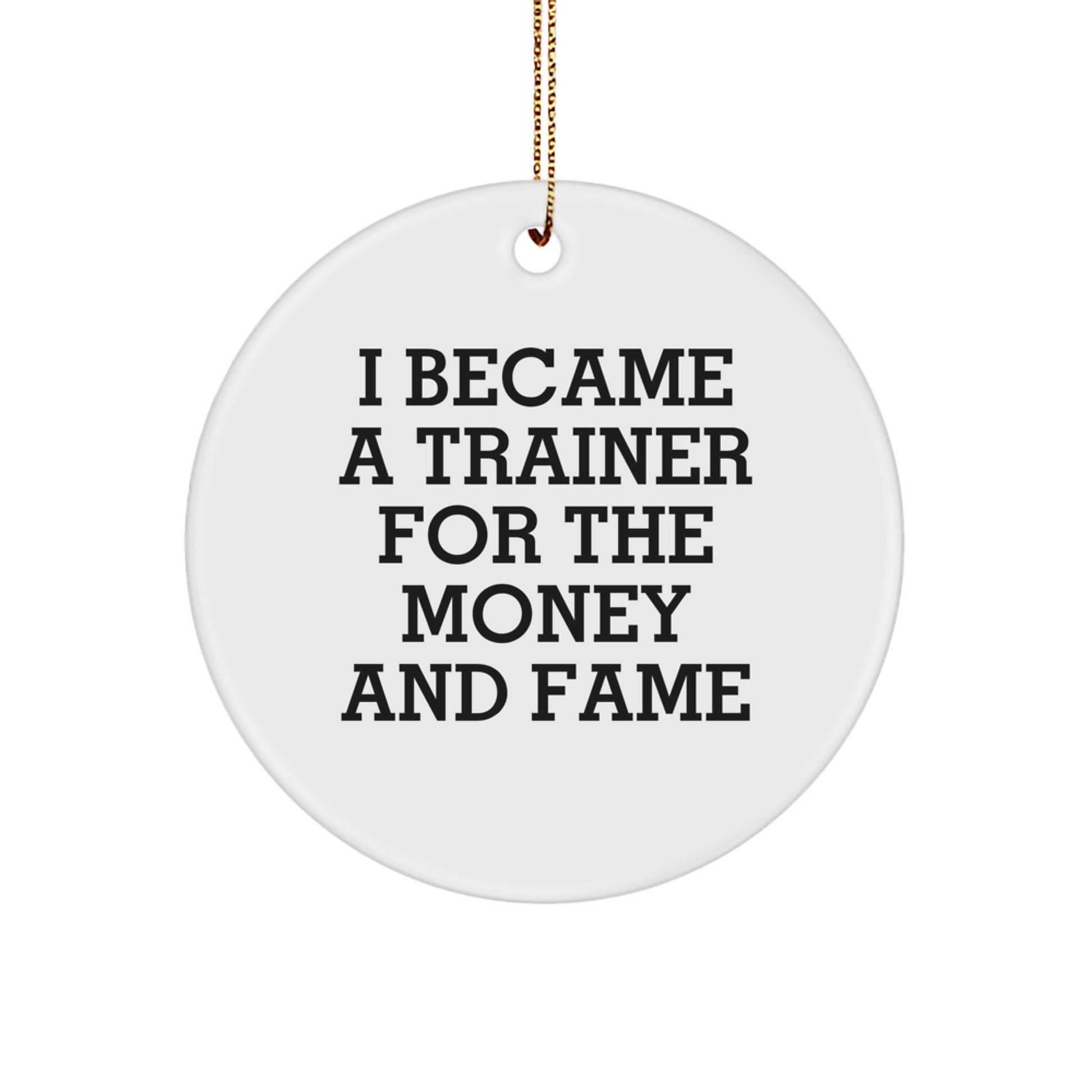 - Order this 'I Became A Trainer For The Money And Fame' Circle Ornament today and give a gift that's both funny and meaningful to a Trainer. It's the perfect way to make their holiday season a little brighter.