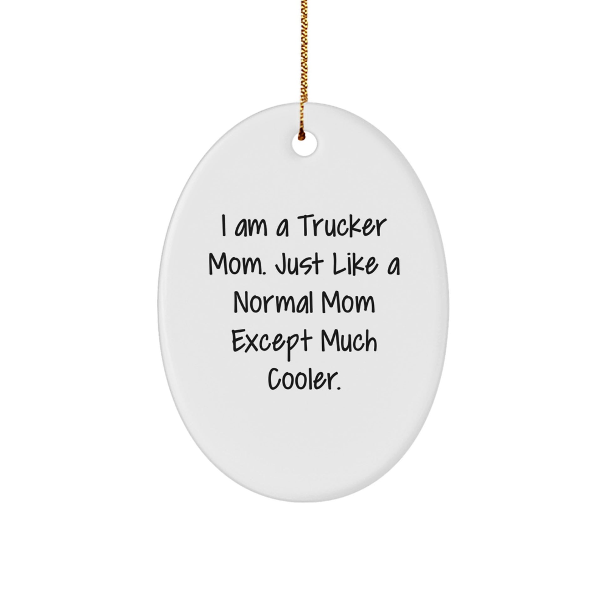 - A funny and unique gift for Trucker moms and families, our Oval Ornament is a thoughtful way to show your love and appreciation for the trucking community. Made from sturdy MDF with a high-gloss plastic finish, this ornament is lightweight and resistant to breaking, making it perfect for households with children or pets.