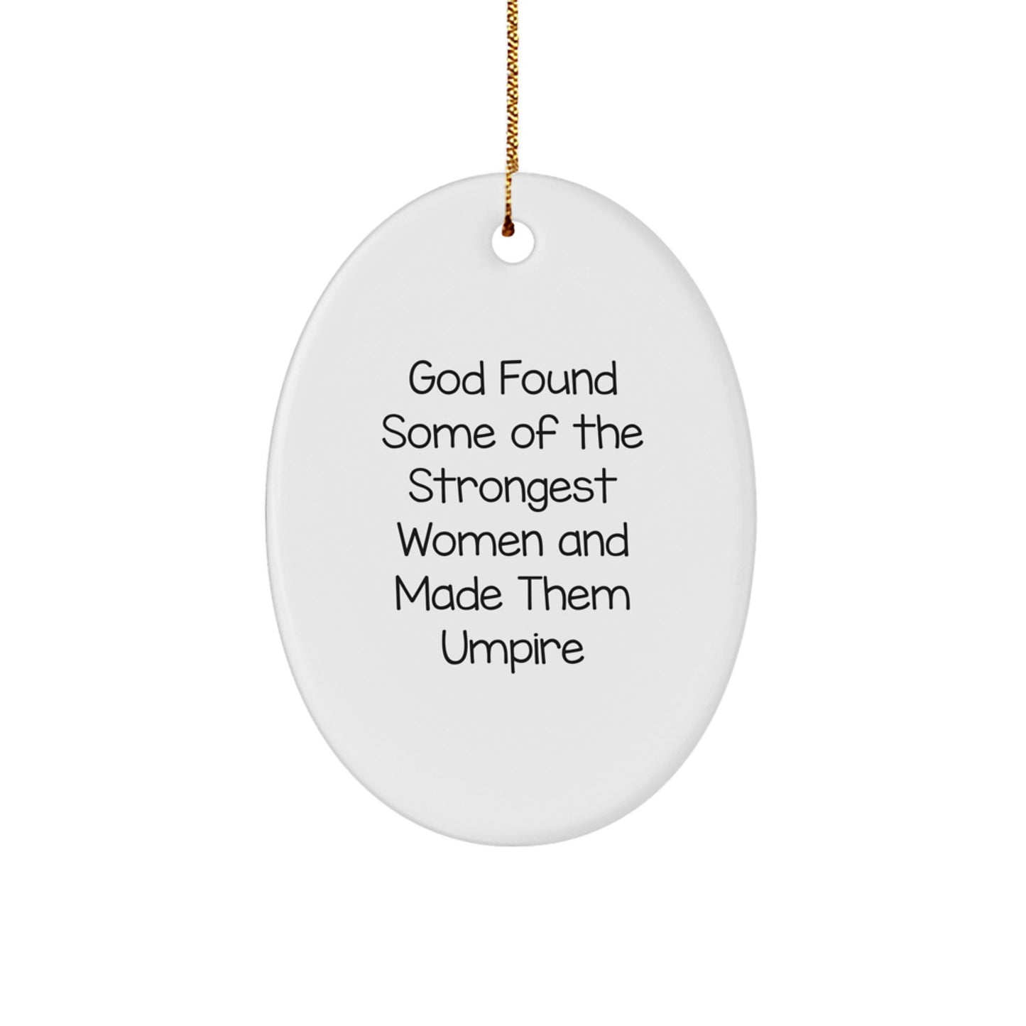 Funny Umpire Gifts for Christmas - 'God Found Some Of The Strongest Women And Made Them Umpire' Oval Ornament from Friends