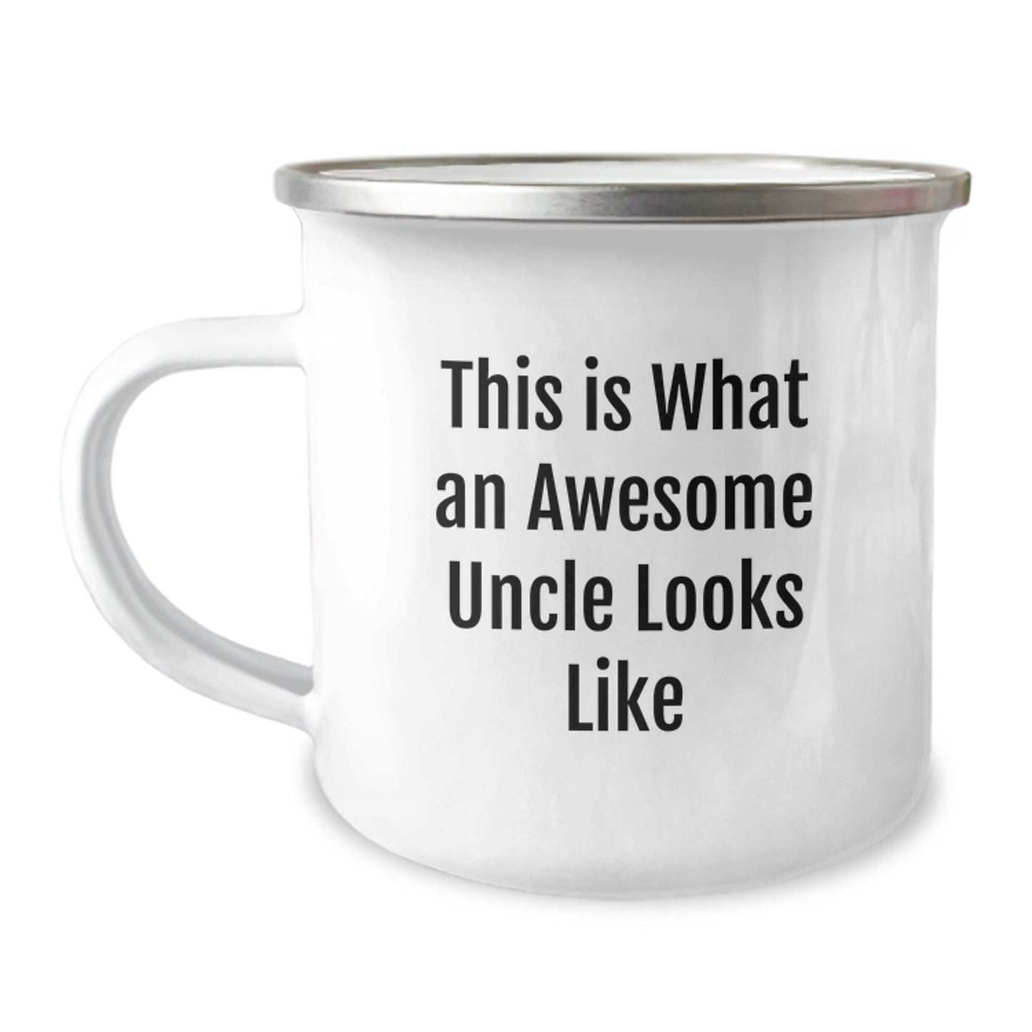 Funny Uncle Gifts for Him - This Is What An Awesome Uncle Looks Like, Camping Mug for Graduation, 12 oz Stainless Steel with Enamel Finish, Hand Wash Recommended, Permanent Printing